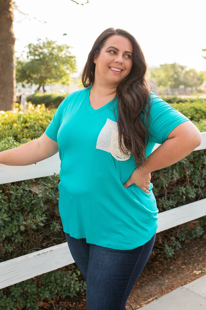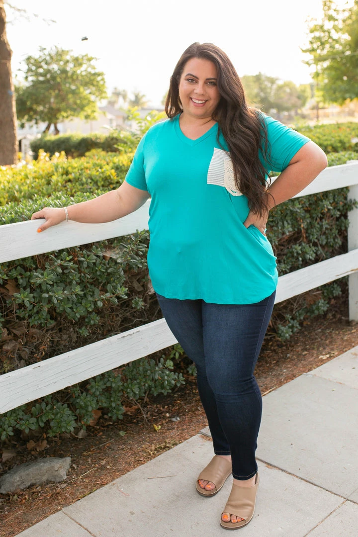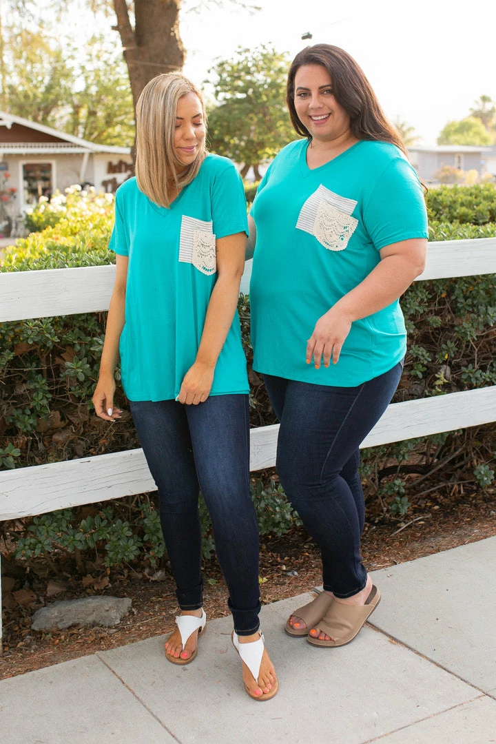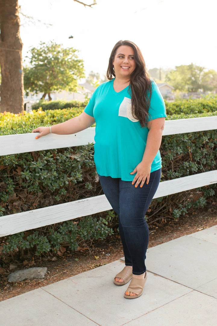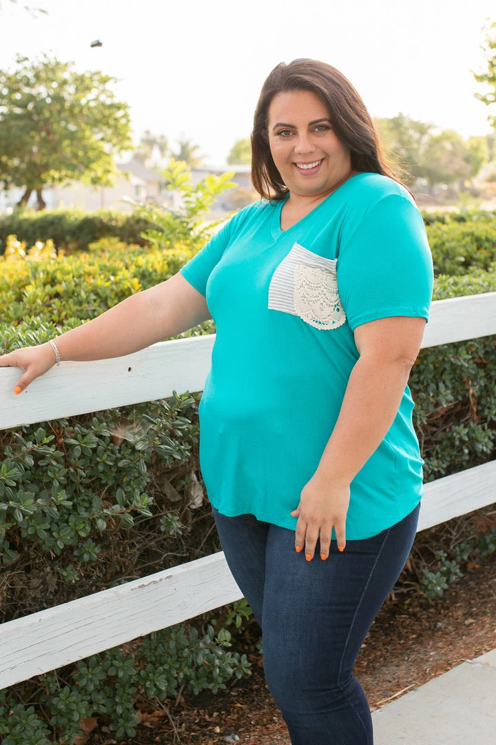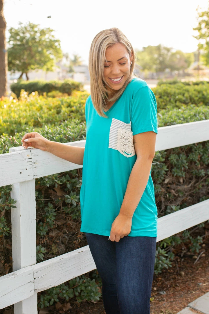The fit of boyfriend style tees are the best with the slightly oversized, relaxed fit, but this one takes the cake with that lace pocket detail!