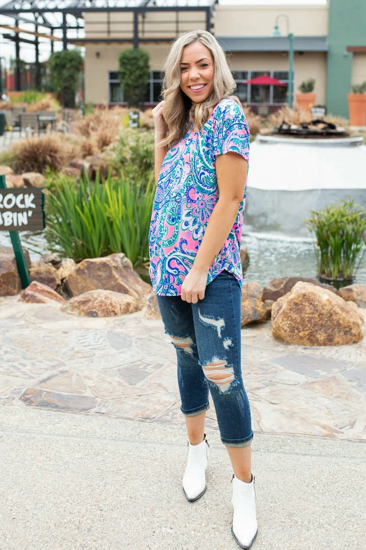 There’s nothing that screams sunshine more than a vibrant neon top. With a tailored relaxed fit, this top features a round neckline and rounded hem.
