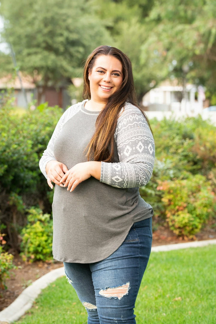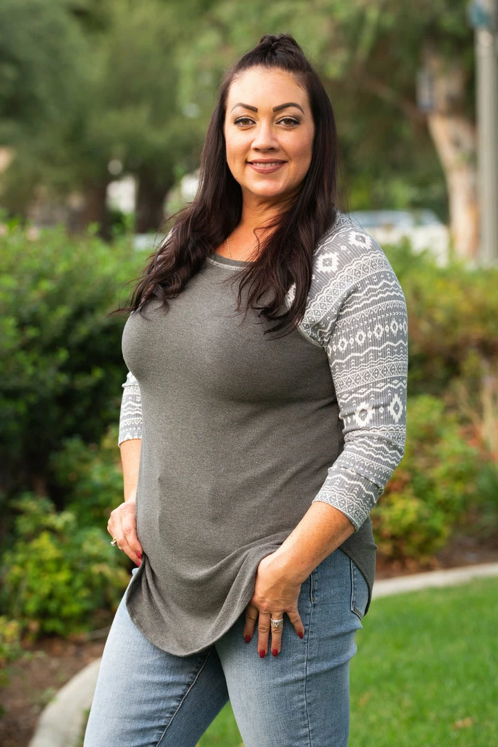 Bring out your inner warrior with this super comfy long sleeve raglan. With a relaxed fit, this top features a round neckline, long raglan sleeves, reverse stitching details and rounded hem.