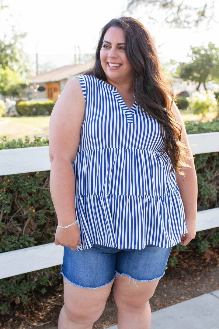 This babydoll gabby is as hot as a firecracker. Made from buttery soft baby suede, this sleeveless top features a v-neck with mandarin collar, and a tiered peplum hem.