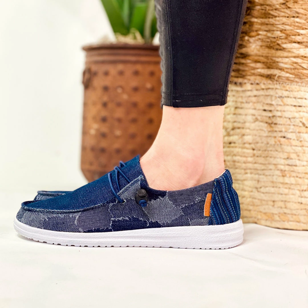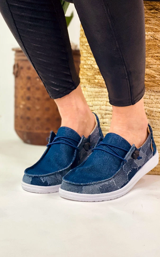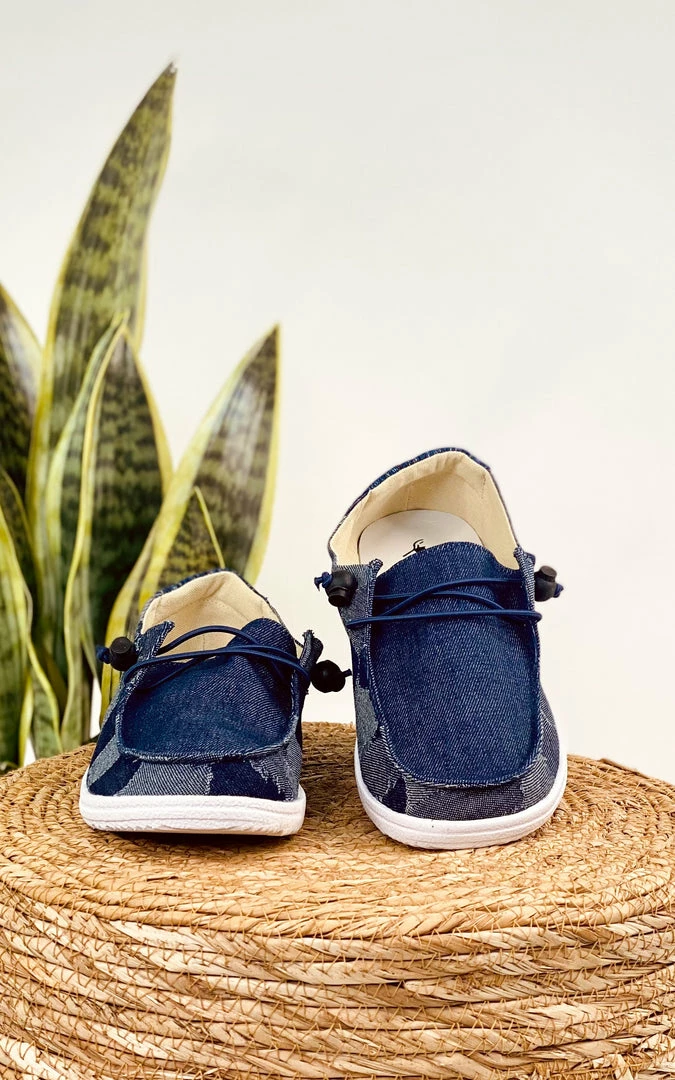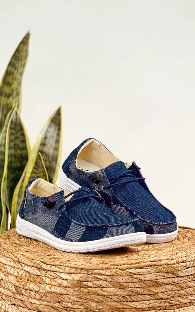 Denim patchwork upper