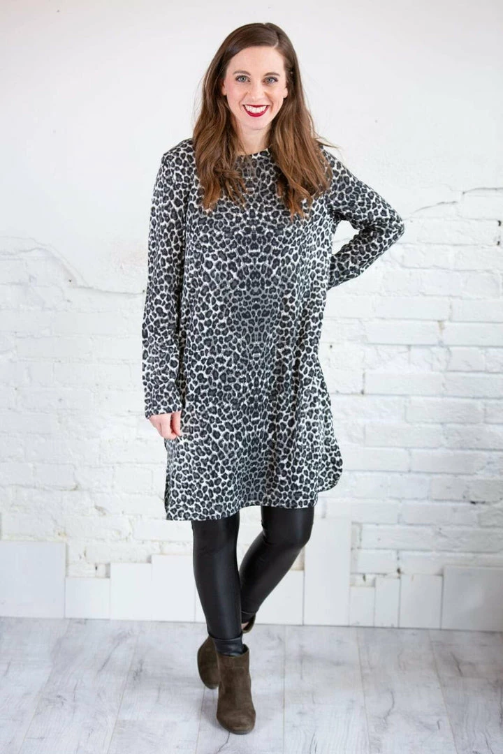 We absolutely love the shape this dress creates, and the versatility to dress up or down! The stretchy knit fabric lays beautifully! Pair with leggings and booties, add a jacket, wear alone with heels! The possibilities are endless!