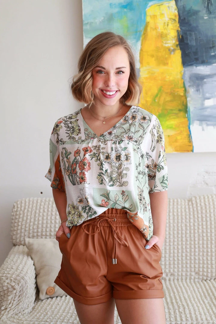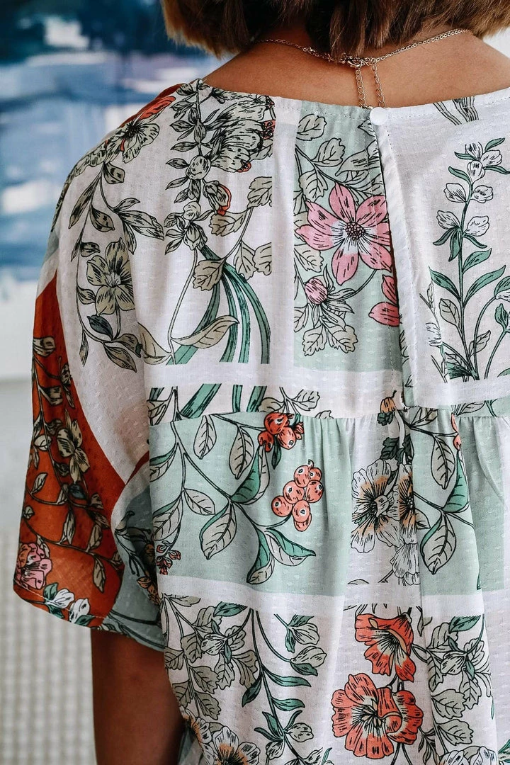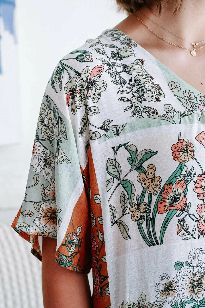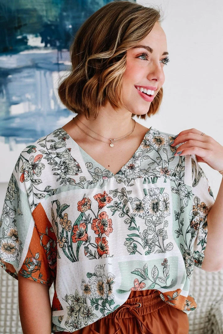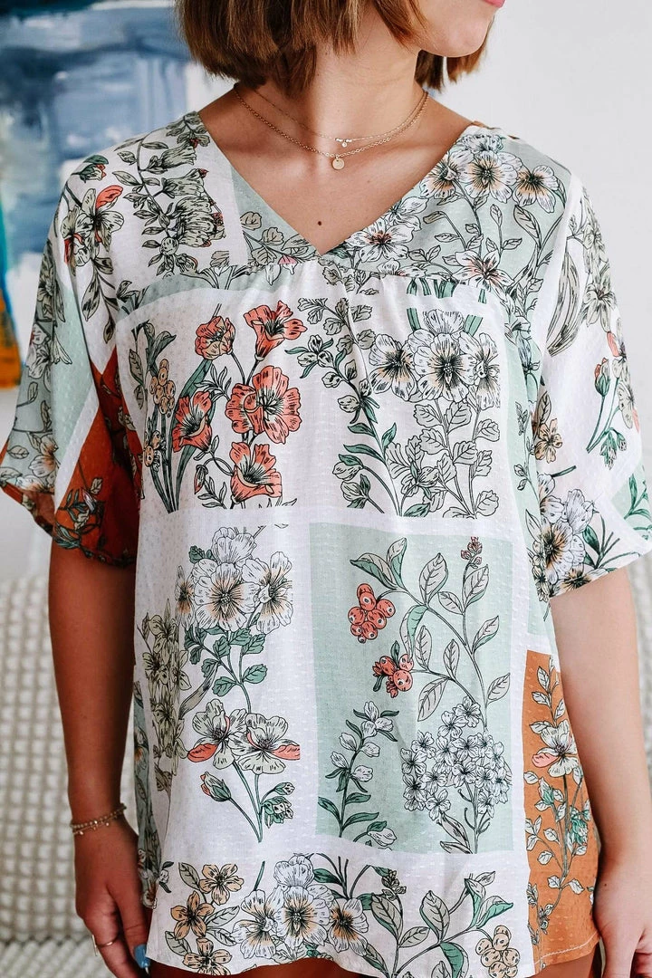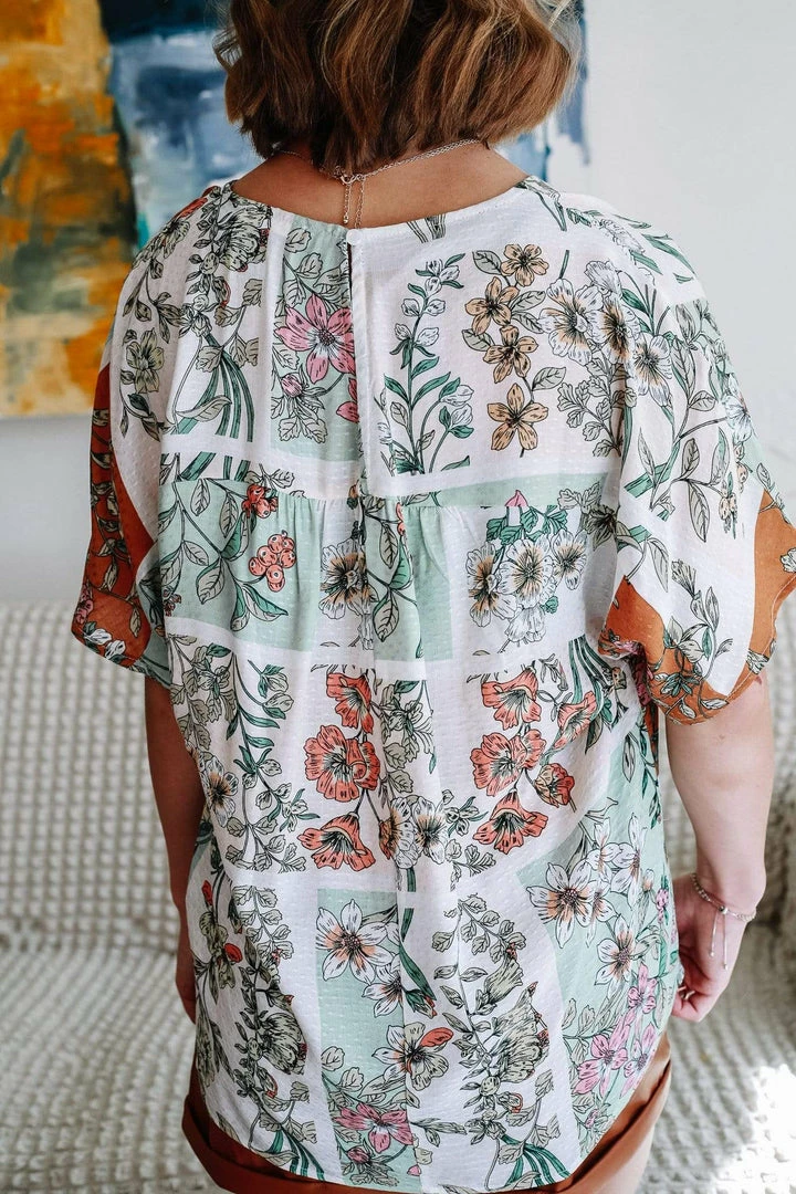 Women’s Floral Print V-Neck Top With Drop Shoulder