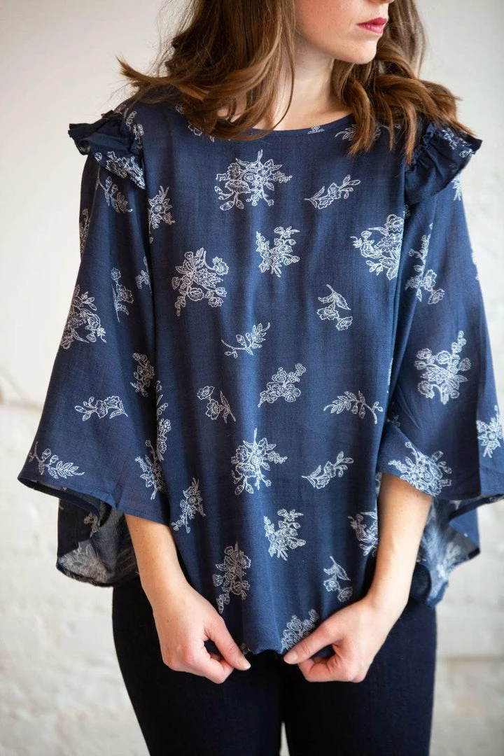 Cotton Bleu Waverly Navy Floral Ruffle Sleeve