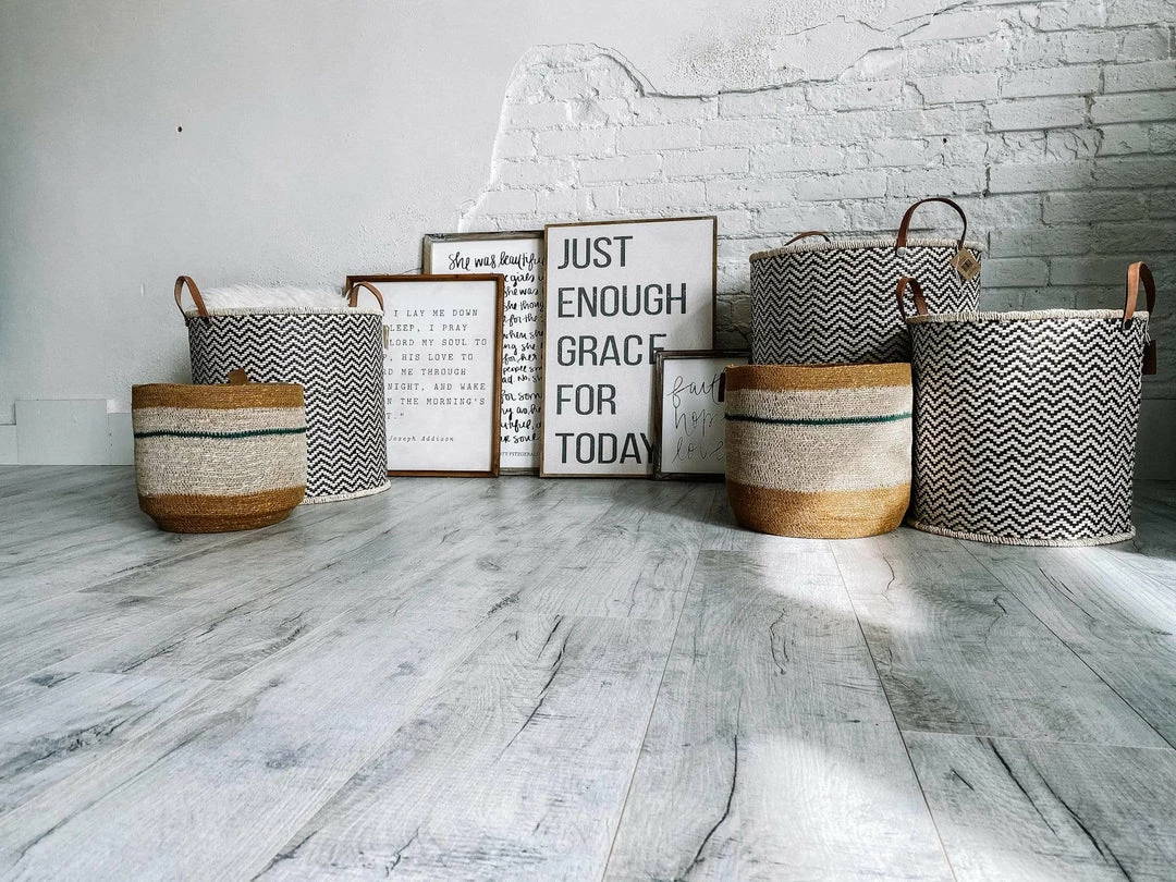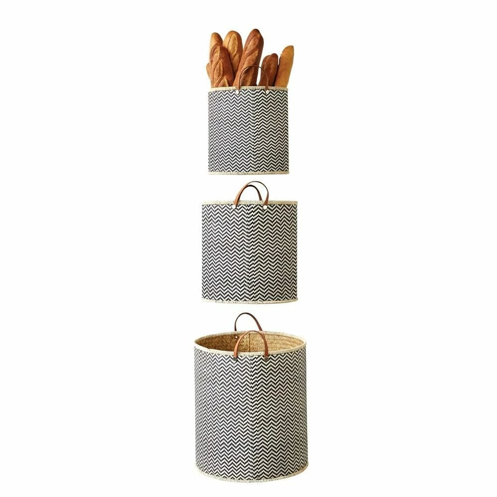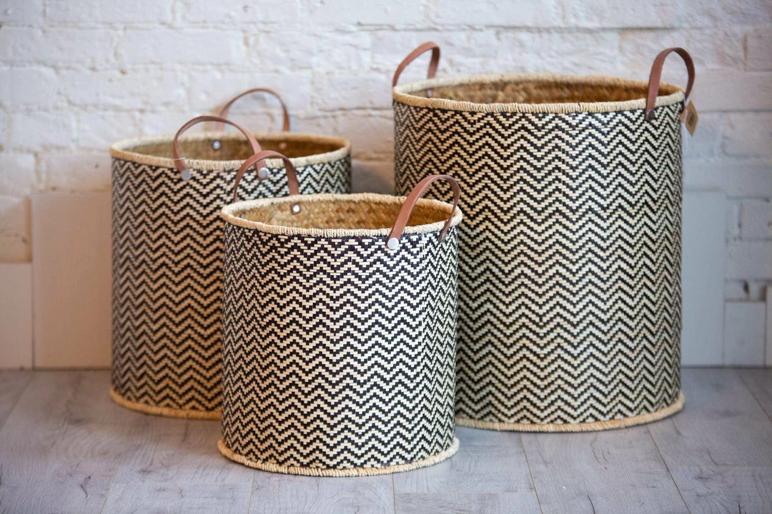 You are going to adore our Palm Leaf Baskets With Leather Handles. This elegant basket set features a natural woven palm leaf design, perfect for a coastal cottage or a shabby chic suburban home. These gorgeous storage baskets will help you organize your home or declutter your office.