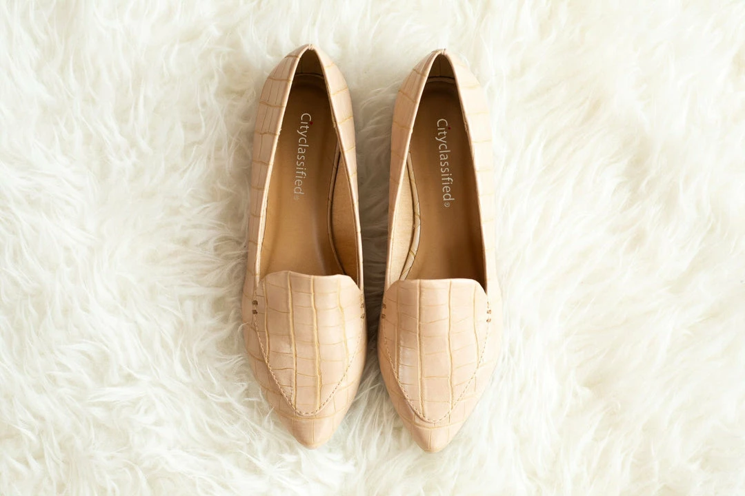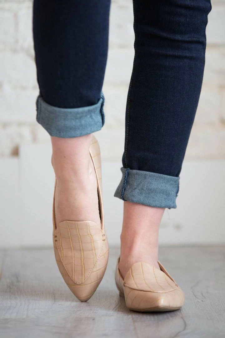Bringing back the best classics this season. The Casual Croco Loafer is a warm shade of tan leather, features a beautiful crocodile print, and a pointed toe. With leather details and easy slip on design – the only problem will be trying to decide which outfit to wear them with first!
