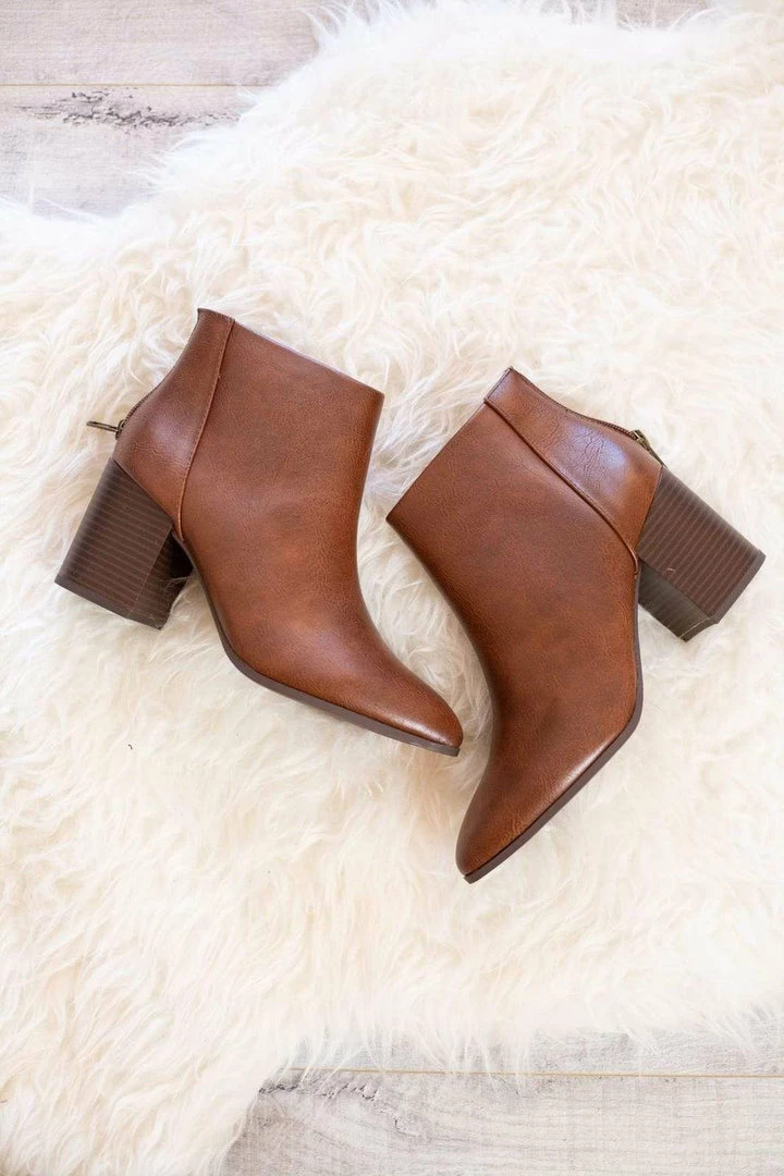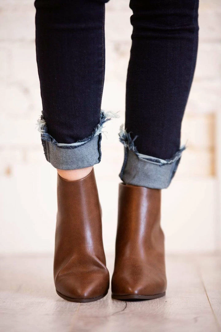 I don’t know that I have ever seen a more classic bootie! Pointed toe, Ankle height, 2 inch heel, in a stunning mahogany color faux leather. Classic, where with denim or a cute dress!