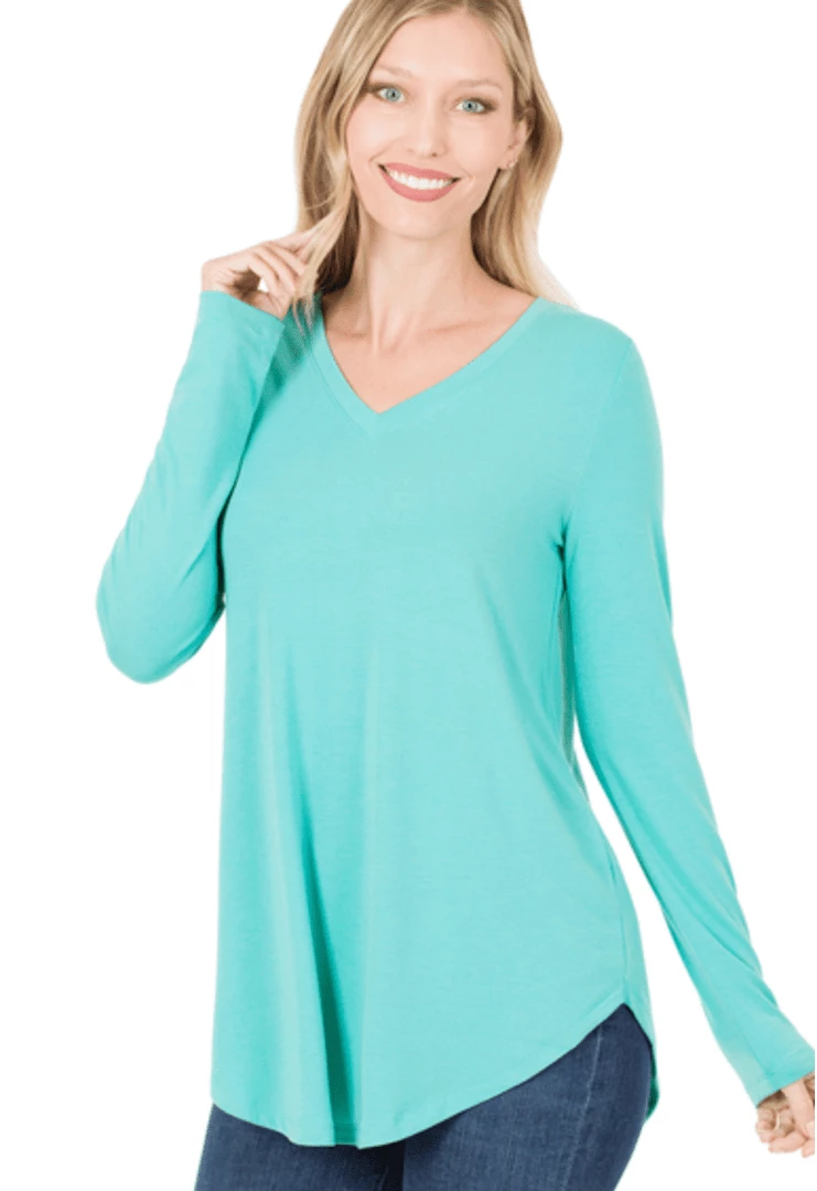 LONG SLEEVE V-NECK ROUND HEM TOP