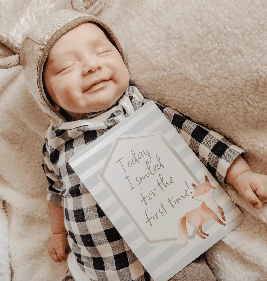 Mark every milestone with these adorable Itzy Ritzy milestone cards! This set includes 14 double-sided cards for a total of 28 photo opportunities, including a baby announcement and a 1 week milestone. The front of each card features a monthly marker while the back side highlights unforgettable milestones like “first tooth” and “first time crawling.” Our milestone cards are printed on cardstock, making them perfect for flat lay photos. Each card is 7.5 wide x 8.5 inches high