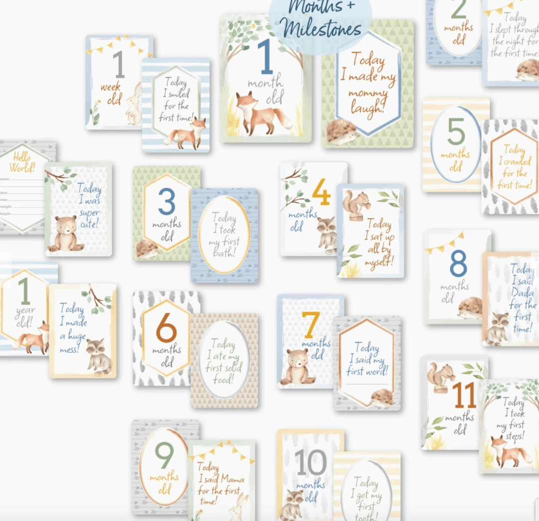 Itzy Ritzy Motherhood + Moments Woodland Itzy Moments™ Double-Sided Milestone Cards