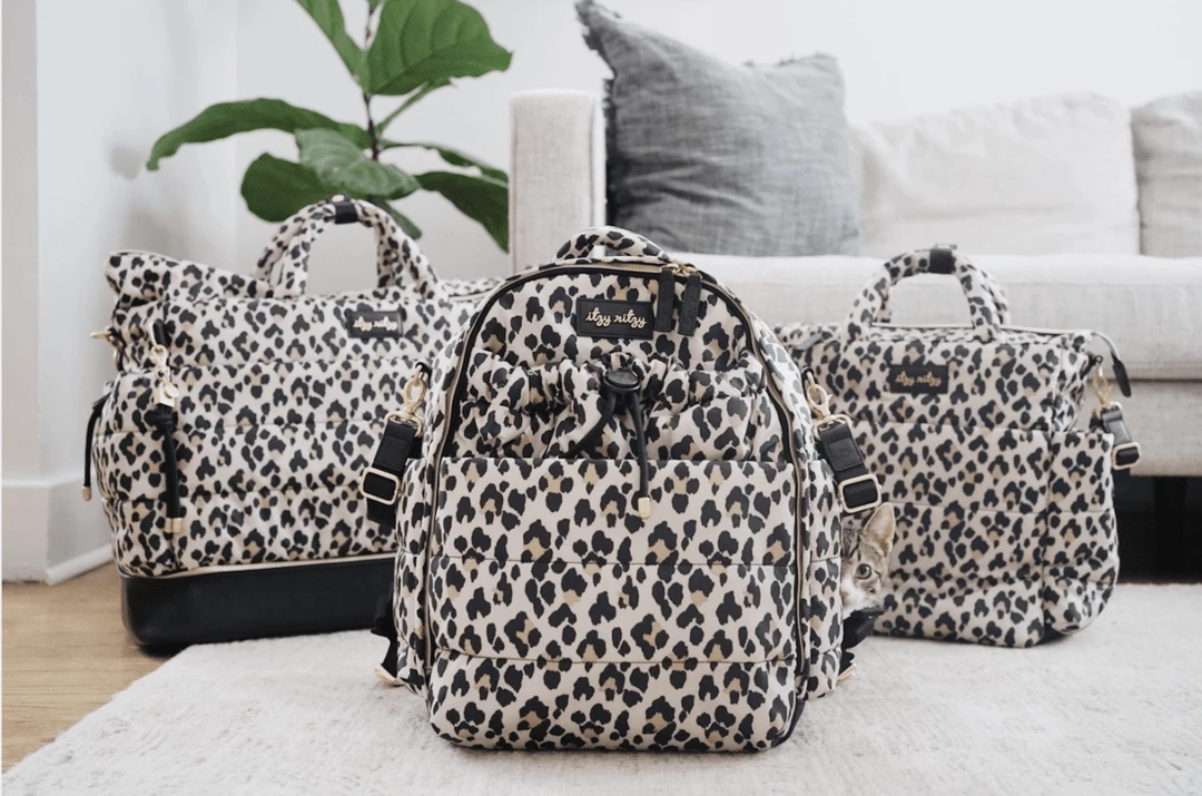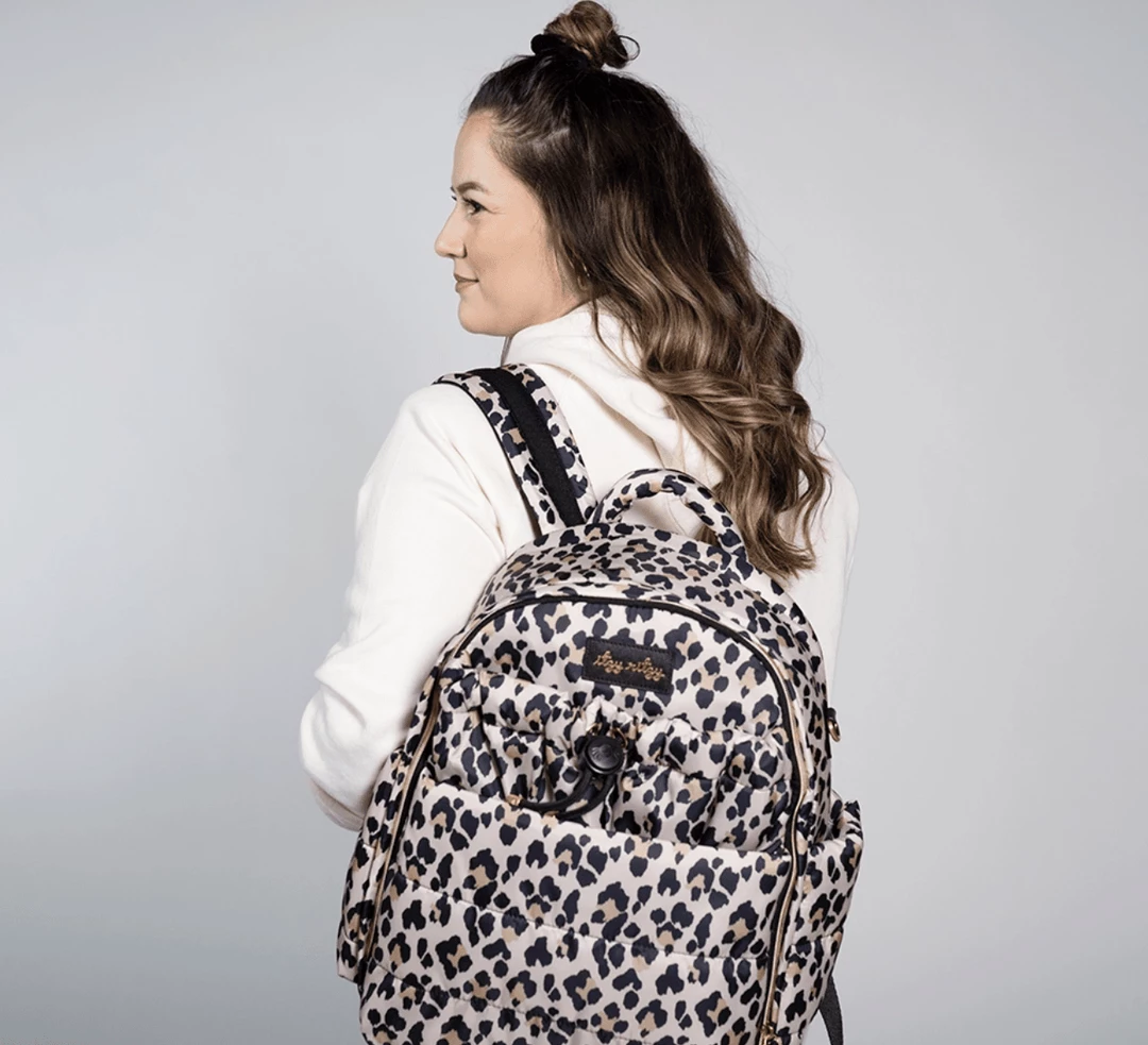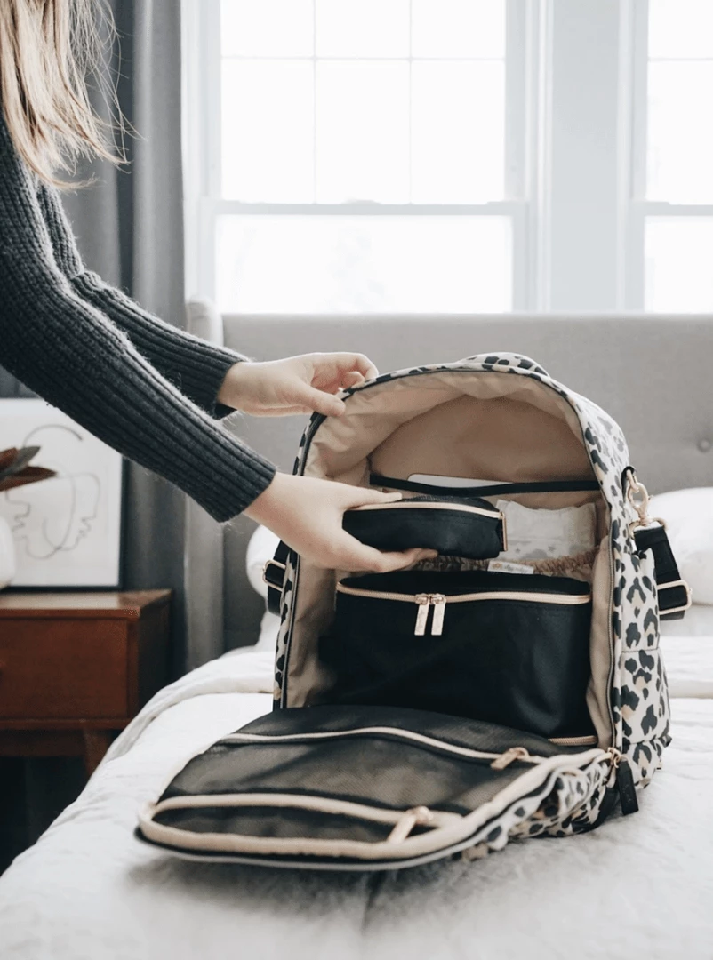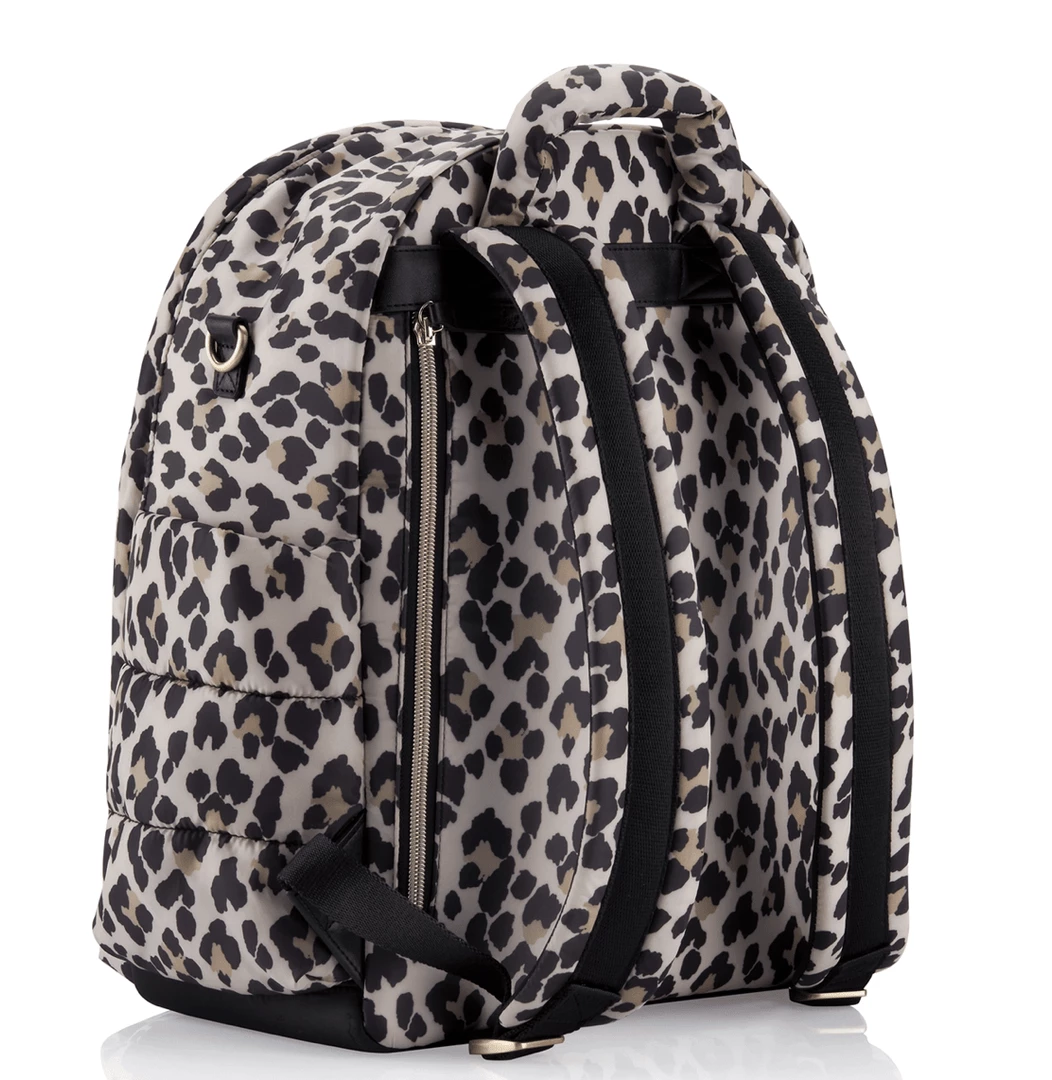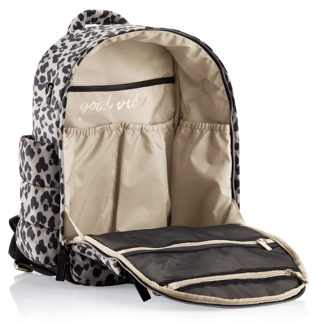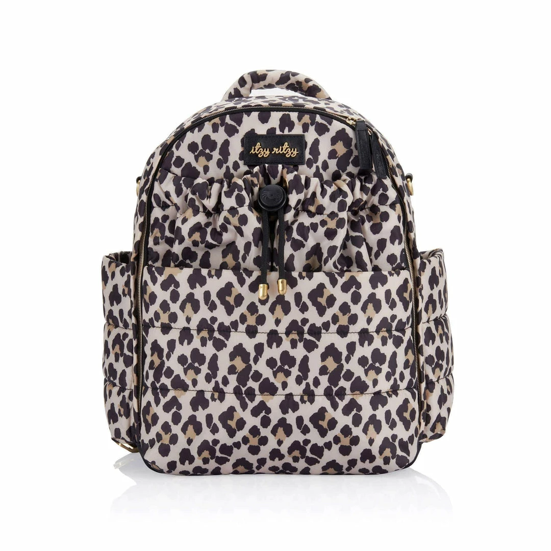 Built for those with their head in the clouds and their feet (usually running around) on the ground, our Leopard puffer style diaper backpack makes a total statement while balancing form and function. The lightweight and airy construction is made for those looking to grab and go, while the laidback and luxe design effortlessly creates a major style moment Take this baby anywhere, with 14 roomy pockets, comfy padded shoulder straps, and endless eye-catching touches—including sleek brushed metal accents, a sporty corded drawstring, and delicate little details that make all the difference. Pack it up and make it a dream come true.