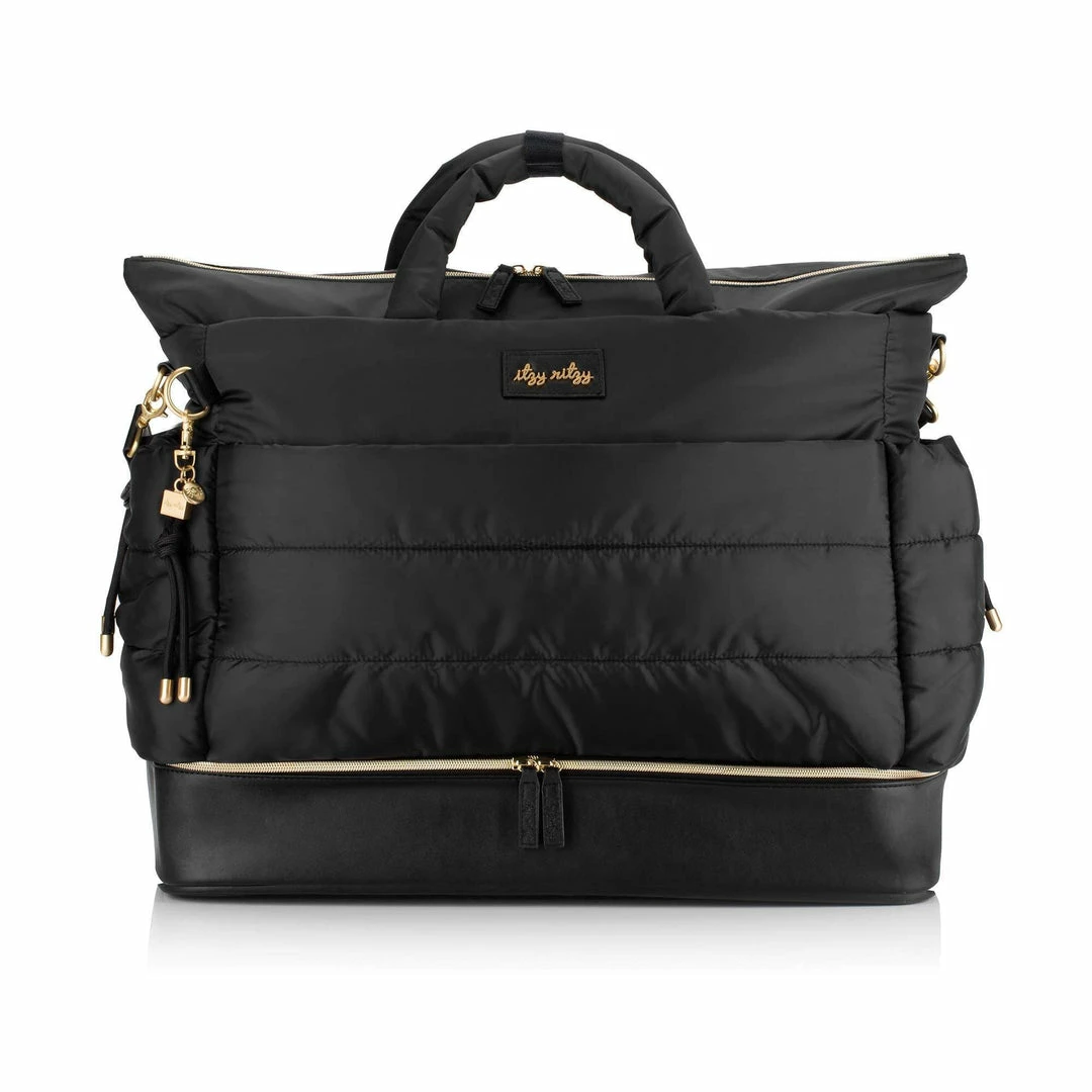 Your dreams are coming true, and we couldn’t be happier for you! Whether you need a spacious hospital bag, a roomy overnight bag, or a diaper bag that fulfills (emphasis on fills!) your every wish, we’ve got you with Itzy Ritzy’s Midnight Dream Weekender. Comfortably stash away your new-mama birthing checklist items, laptop and hospital paperwork in the large compartments while easily unzipping the sturdy base for added storage. With 12 pockets, this lightweight, puffer style wonder elevates your journey and effortlessly slips onto to your luggage to last you well beyond the baby days.