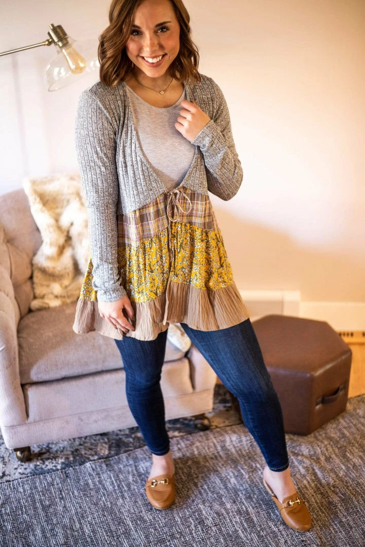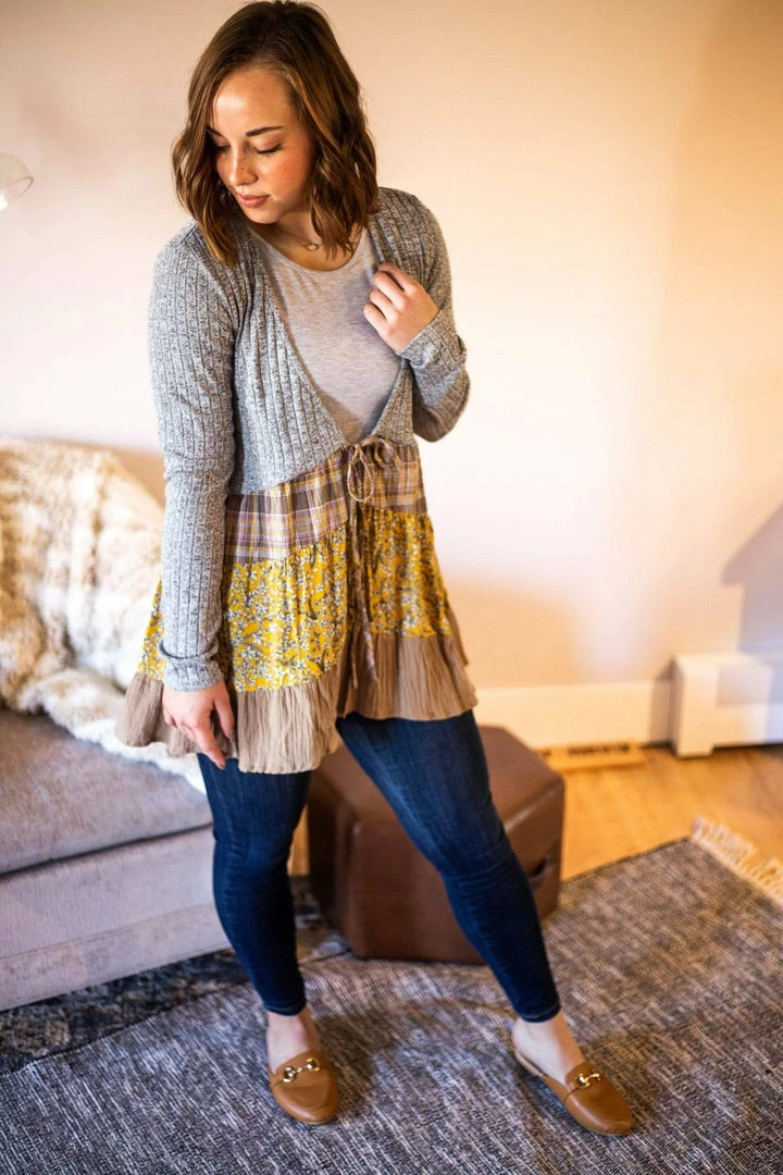 LLove Apparel Sensing A Pattern Front Tie Cardigan