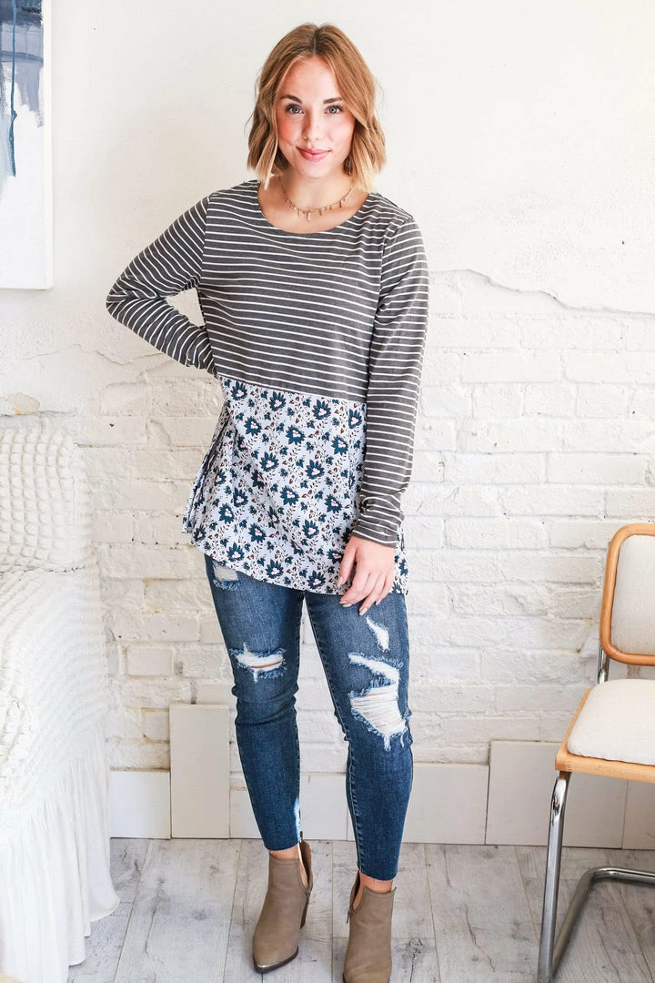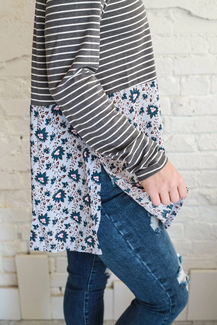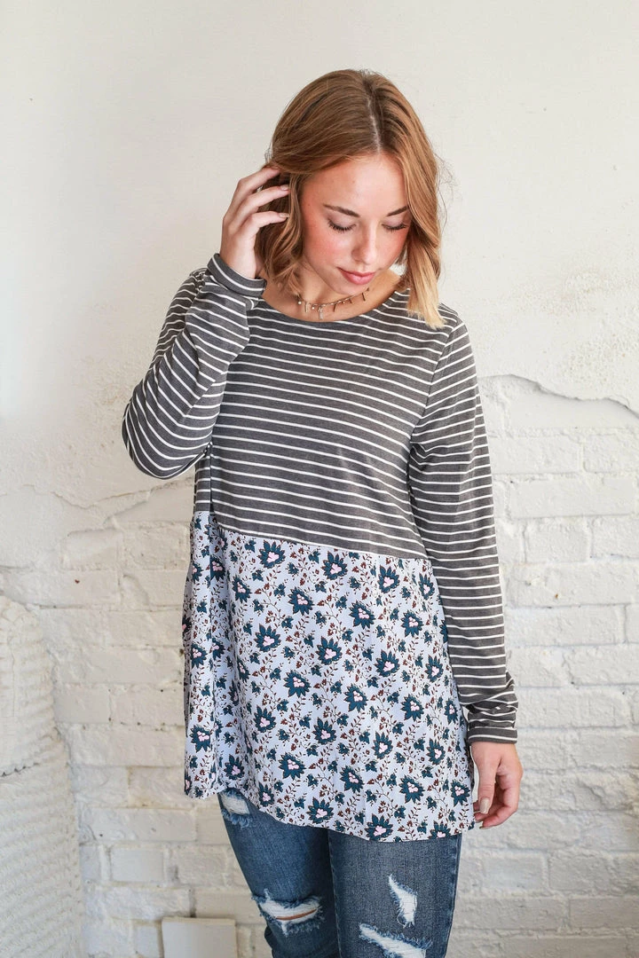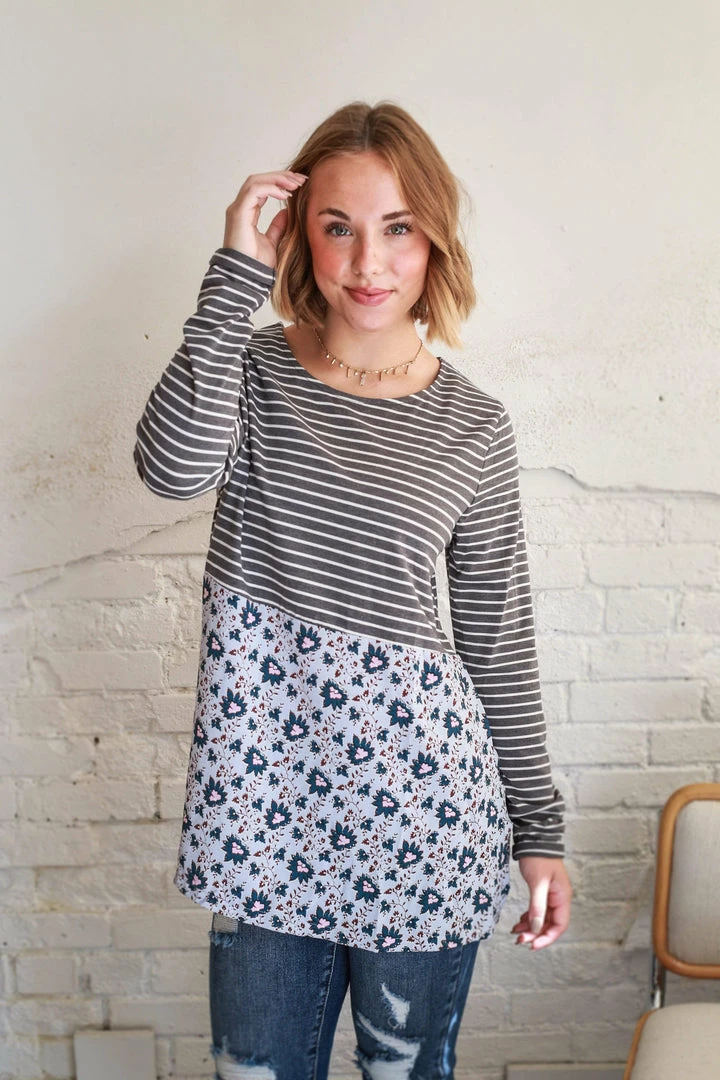 LLove Fontaine Floral Color Block Top (GHG-S)