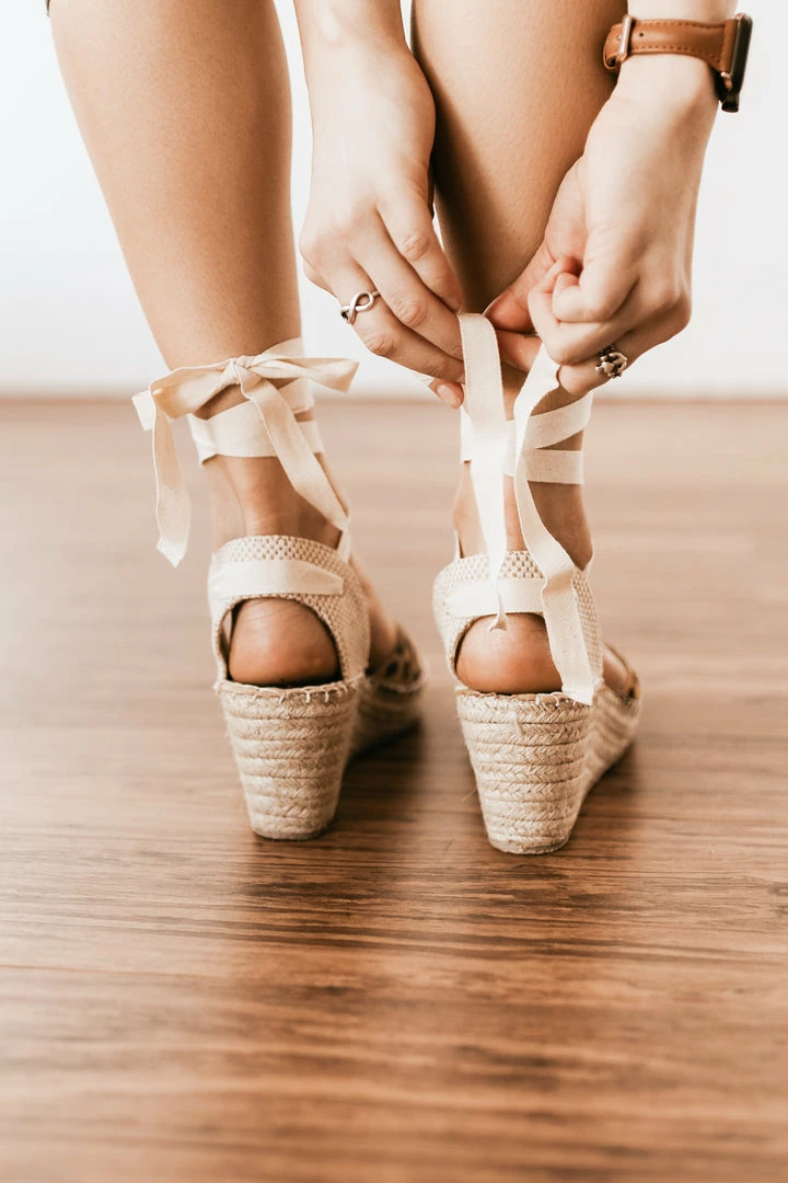 Warm tones and supple suede outfit the Firefly, a classic espadrille wedge with a lace-up closure.