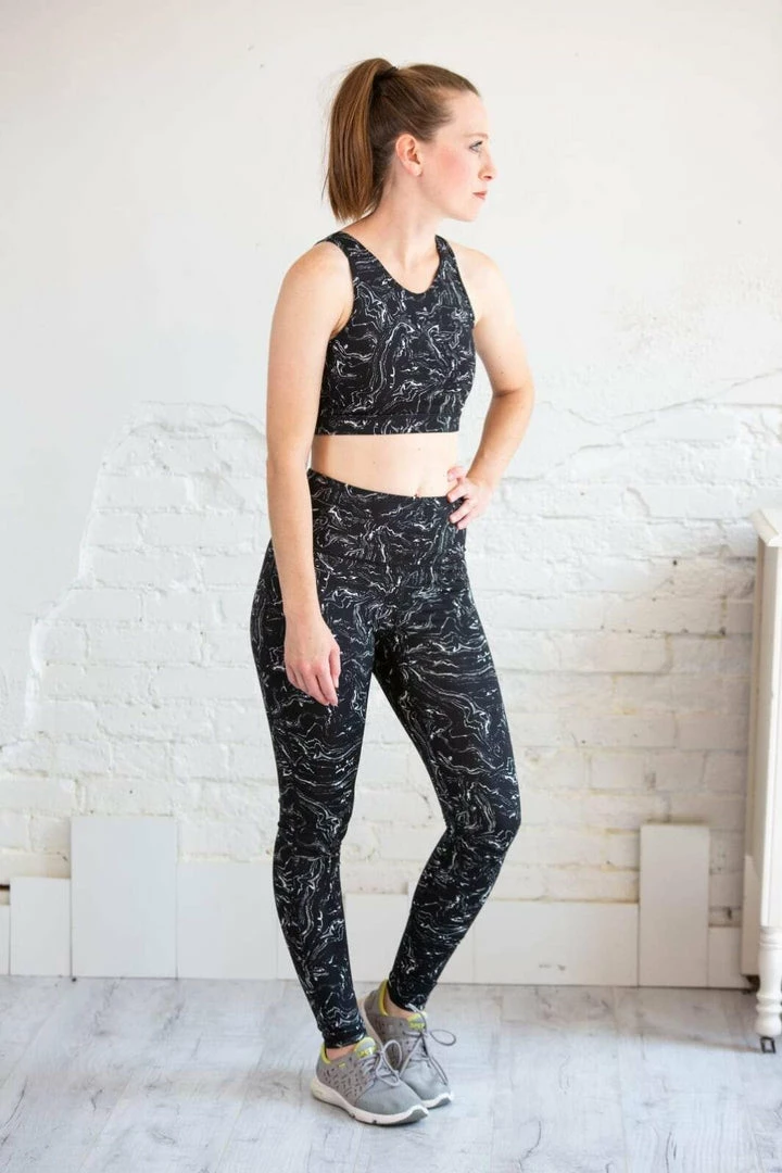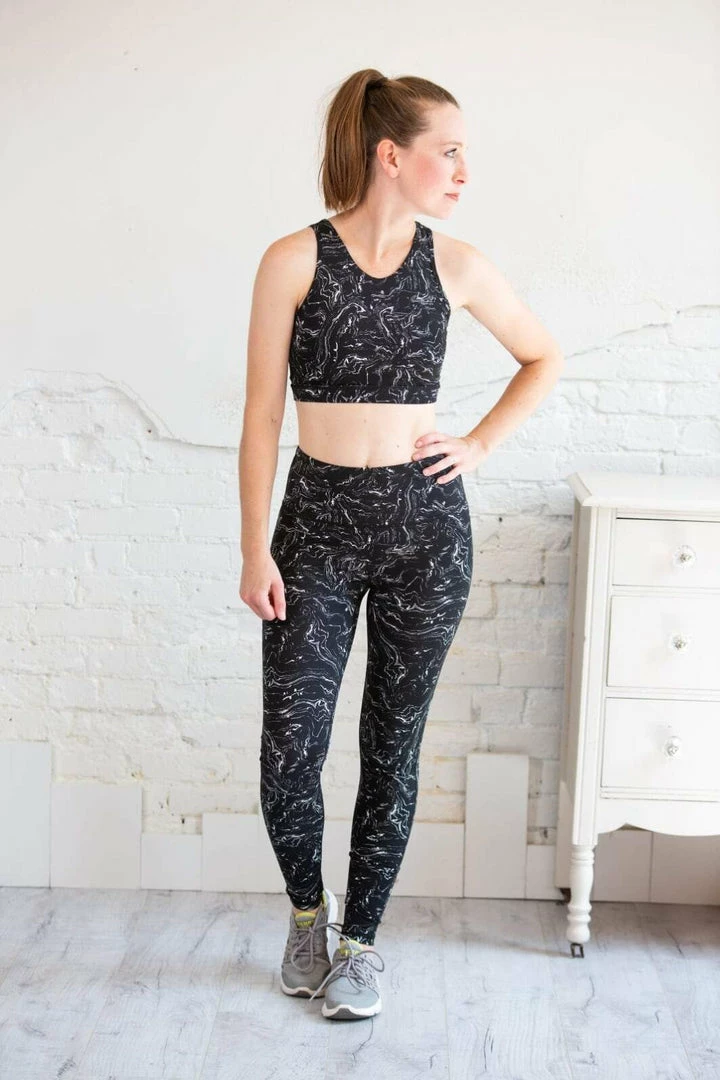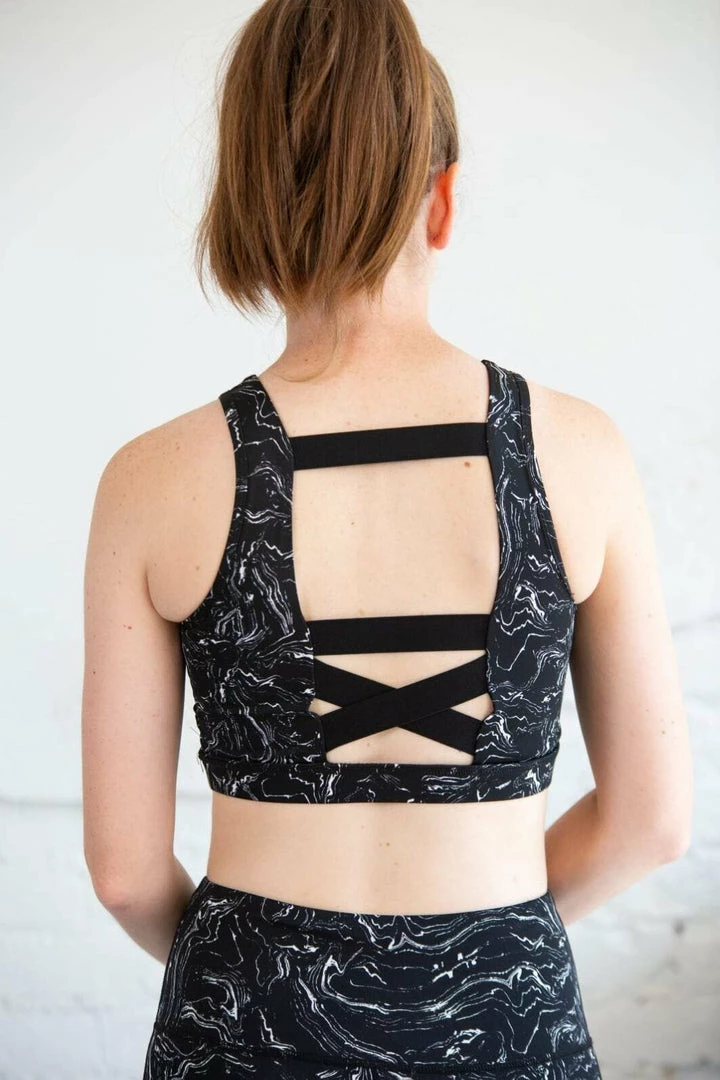 Marble Swirl Print Strap Back Sports Bra