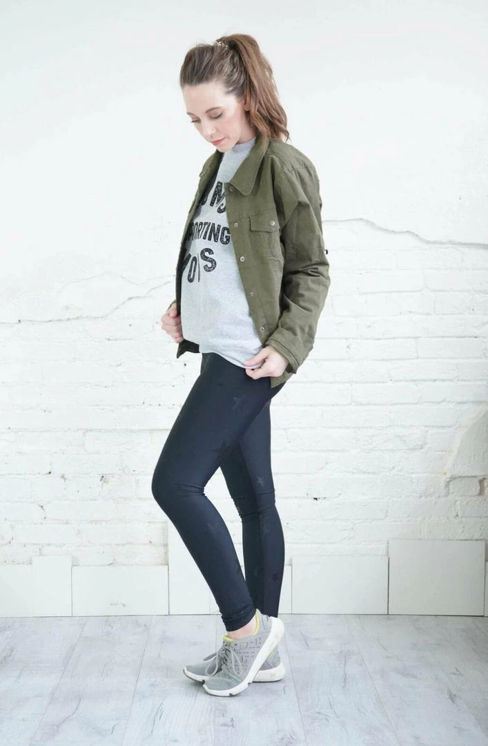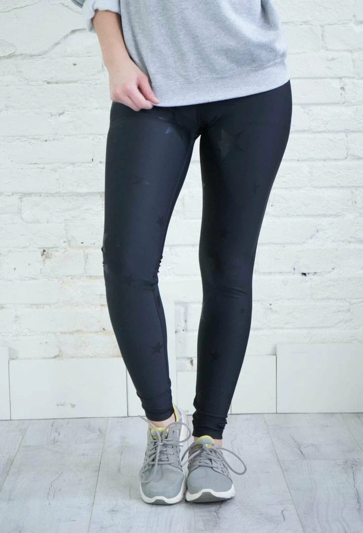 These sleek leggings are decorated with black foil stars in various sizes. The result is a dramatic and bold, celestial look, perfect for the star in you.