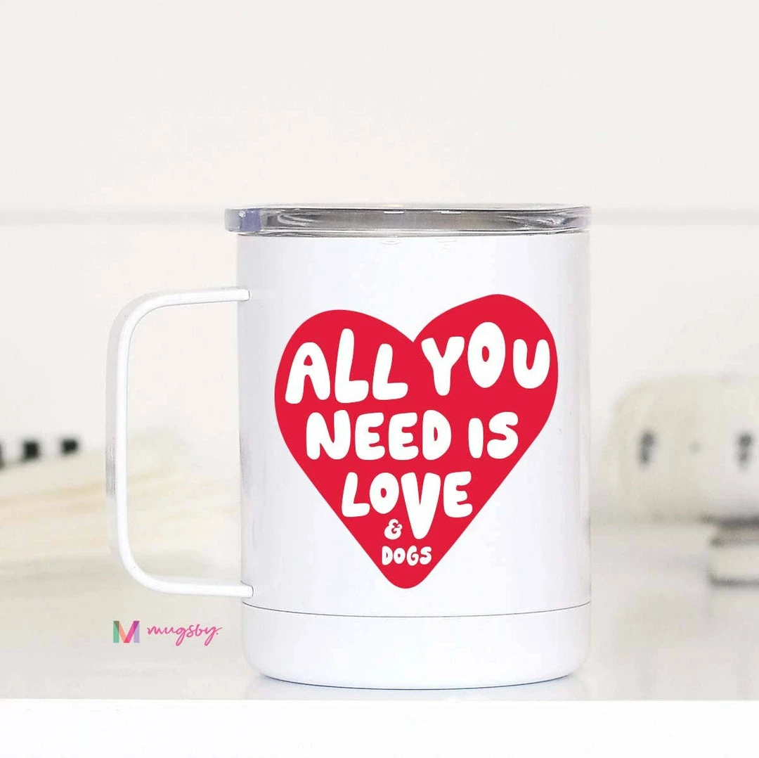Mugsby All You Need Is Love And Dogs Valentine Travel Cup