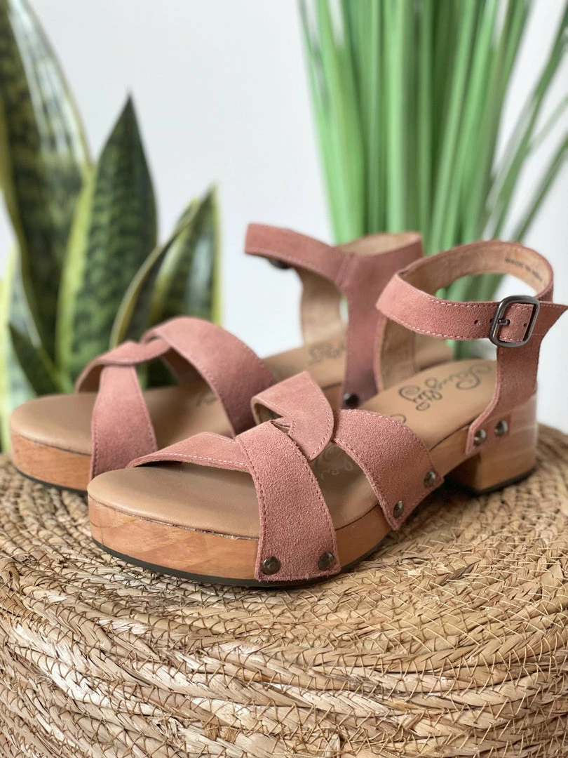 The Strausse sandal is a customer favorite because of it’s style and comfort. This darling sandal features a small wooden heel and a thick comfort footbed. Genuine rose suede upper and a knotted accent finish this sandal off perfectly!