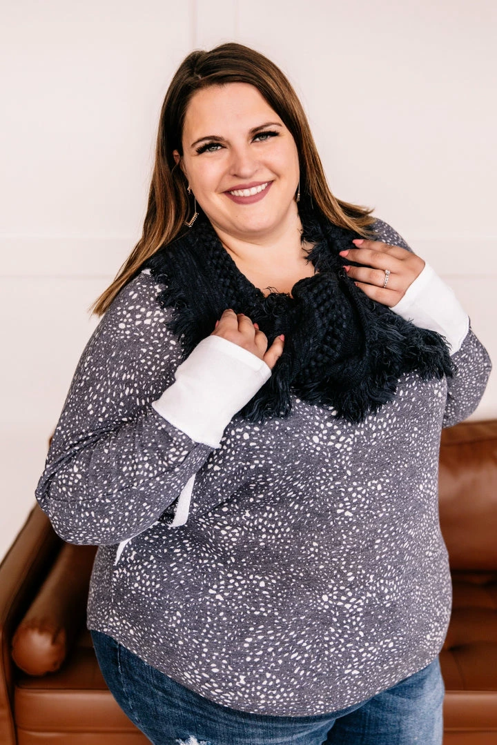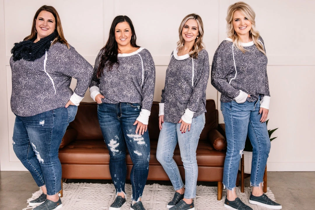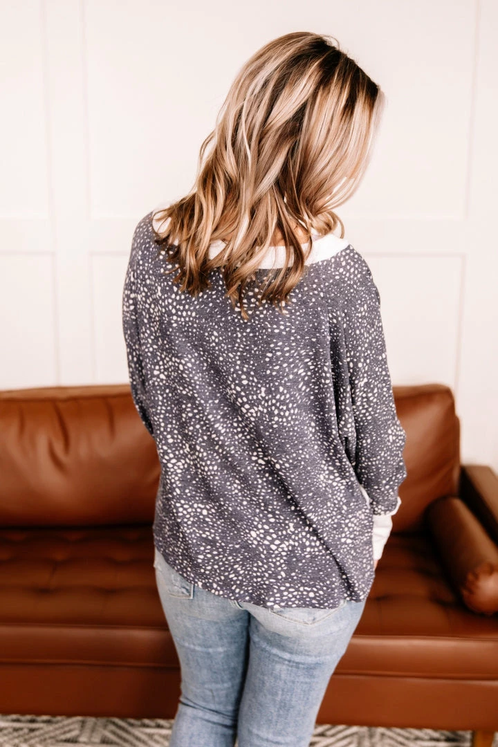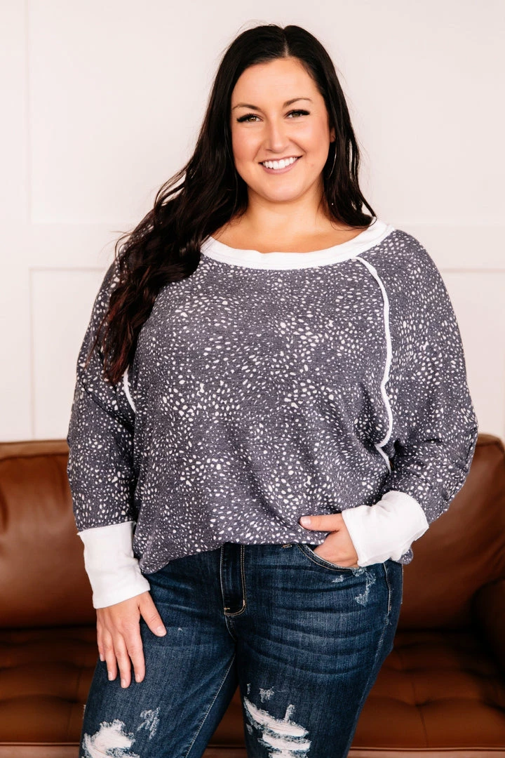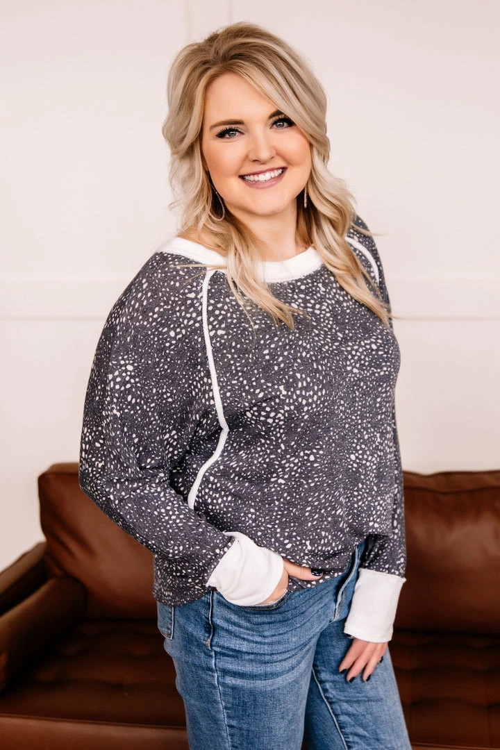 - Contrasting fabric at sleeves and neck