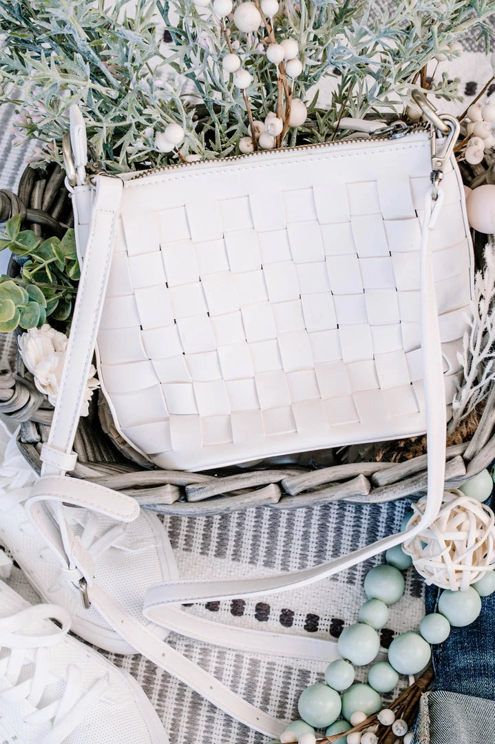 No Ship Drop Ship Carry Me Home Basket Crossbody Purse In Daisy White By Joy Susan Apparel