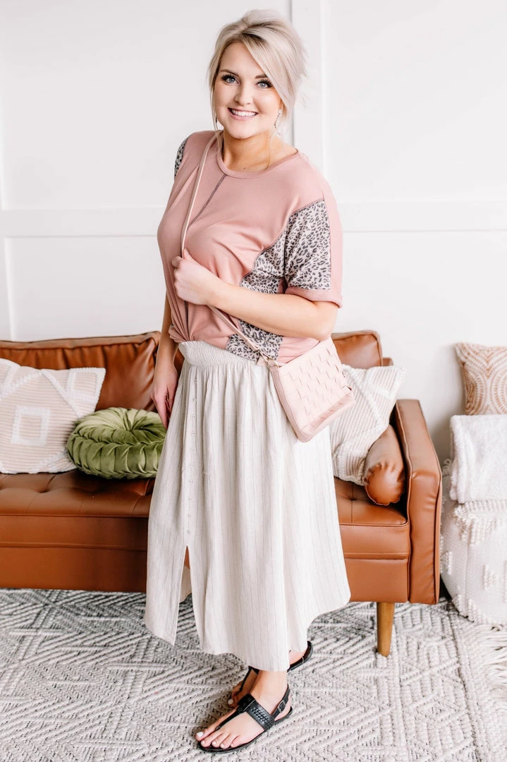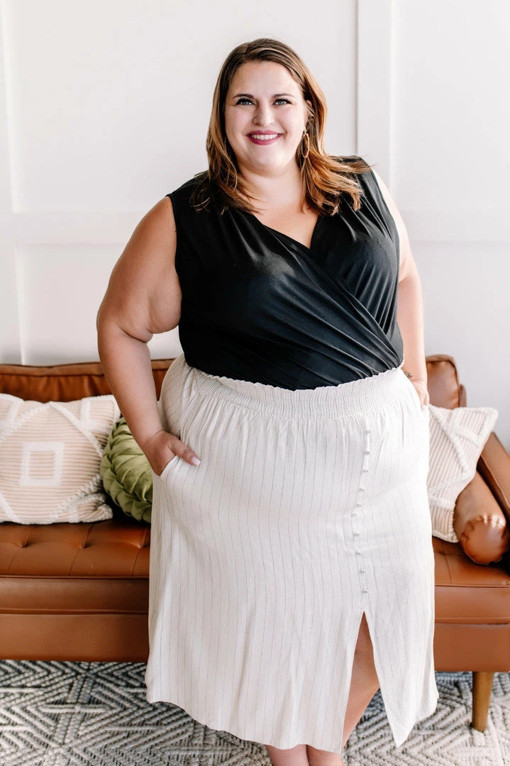 No Ship Drop Ship Fair To Midi Striped Skirt In Oatmeal (GHG-S-L)