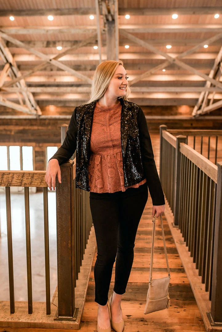 - Sequined front