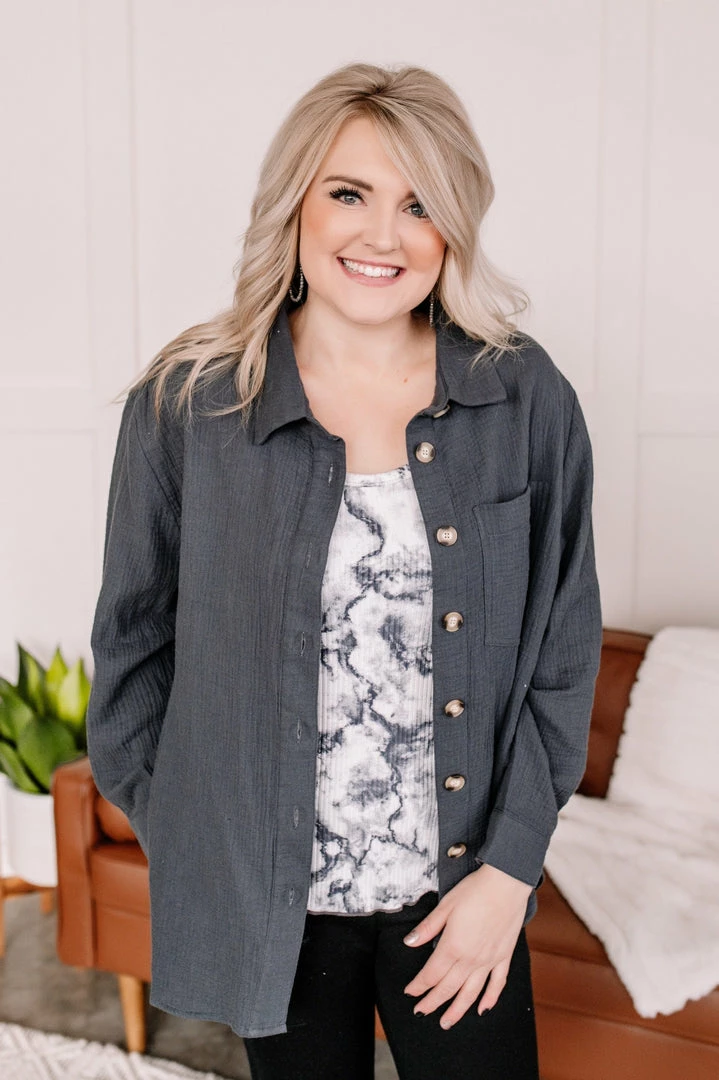 - Fits relaxed, can size down one, or stay true to size for a layered, oversized look
