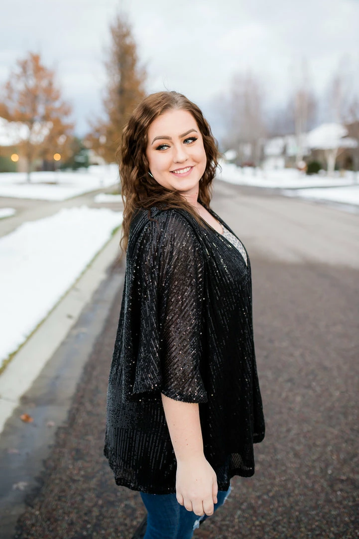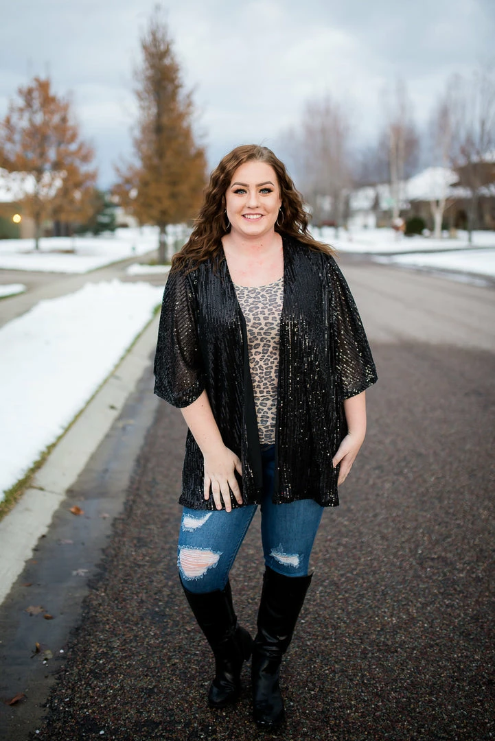Your look is sure to be a hit when you show up in this stunning cardigan. Never be out in the cold with this party ready gem!