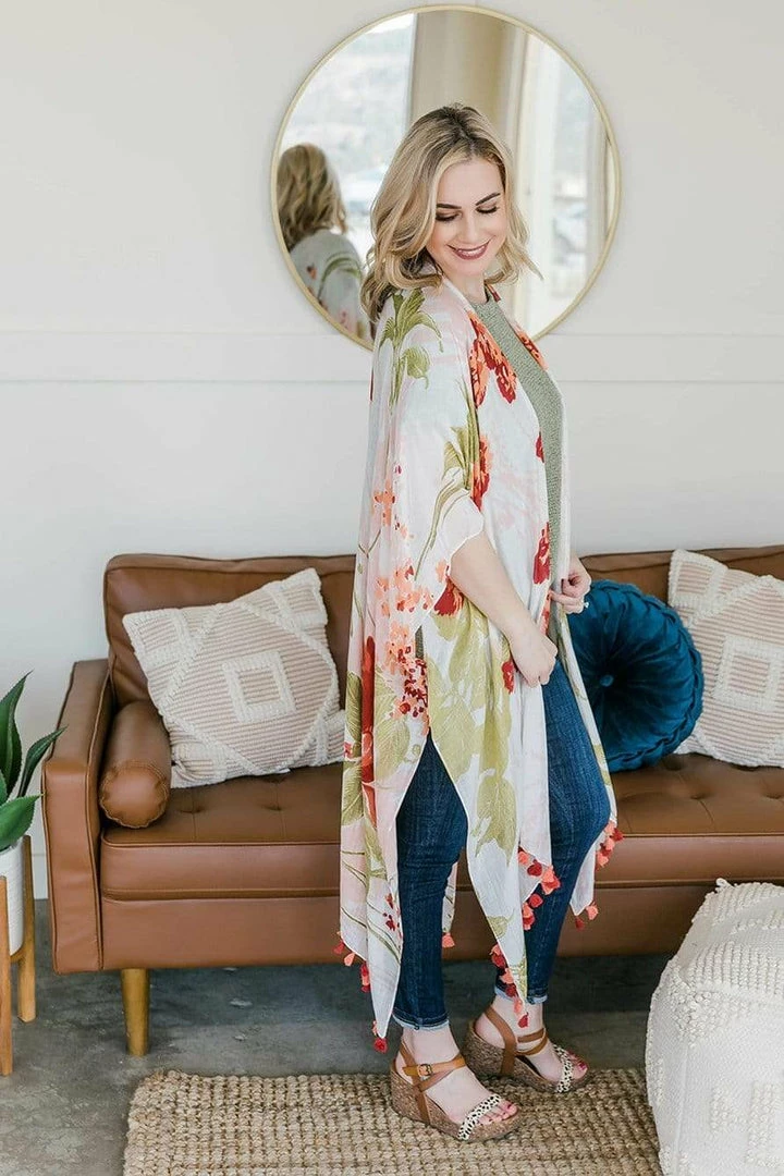 We may not be able to travel the islands, but we can bring the islands to us with this fun, tropical-inspired kimono cardigan.