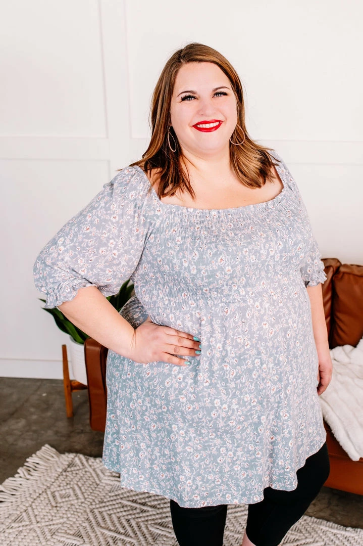 - Elastic neckline and ruffle sleeve