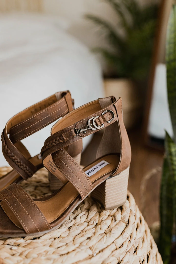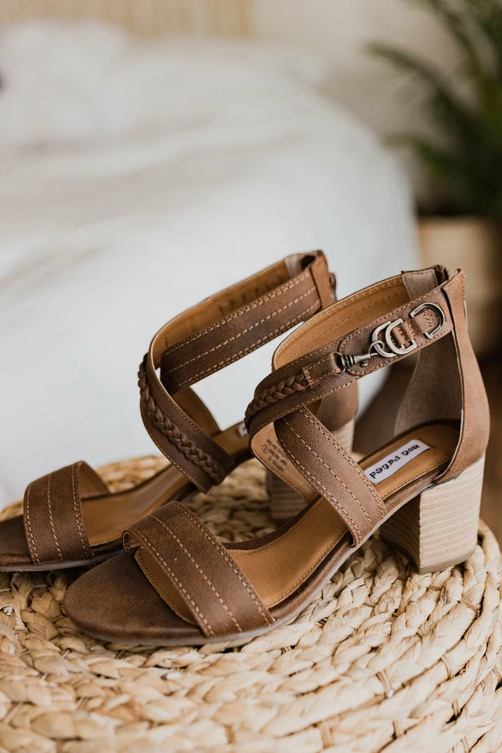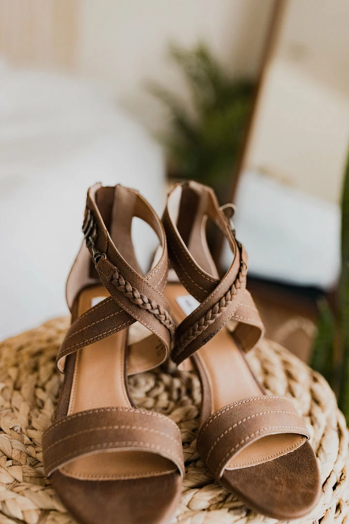 This block heel sandal lends a unique look with brass hardware and a braided top.