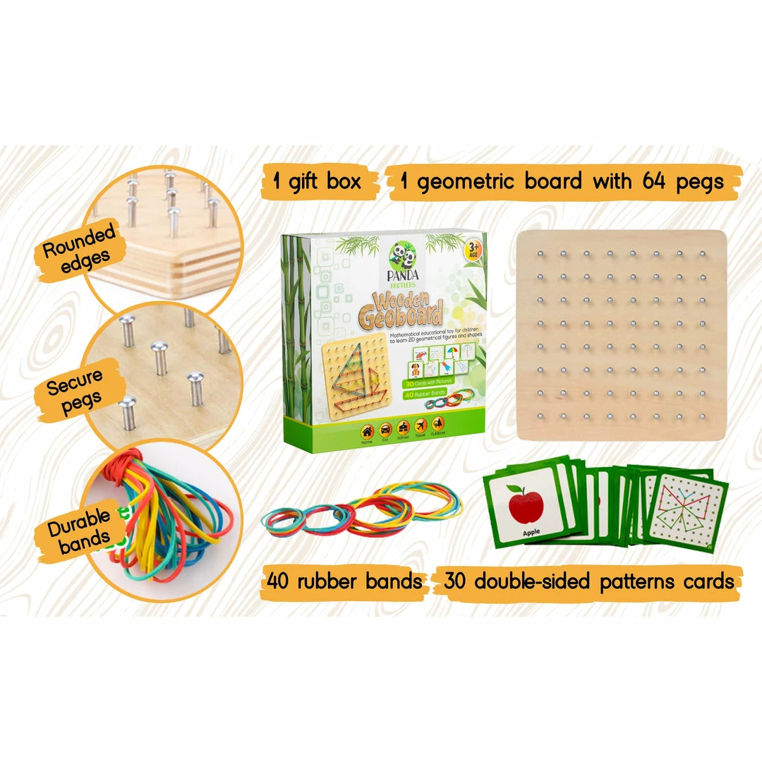 Panda Brothers Gifts Montessori Toy For Kids – Wooden Geoboard With Rubber Bands