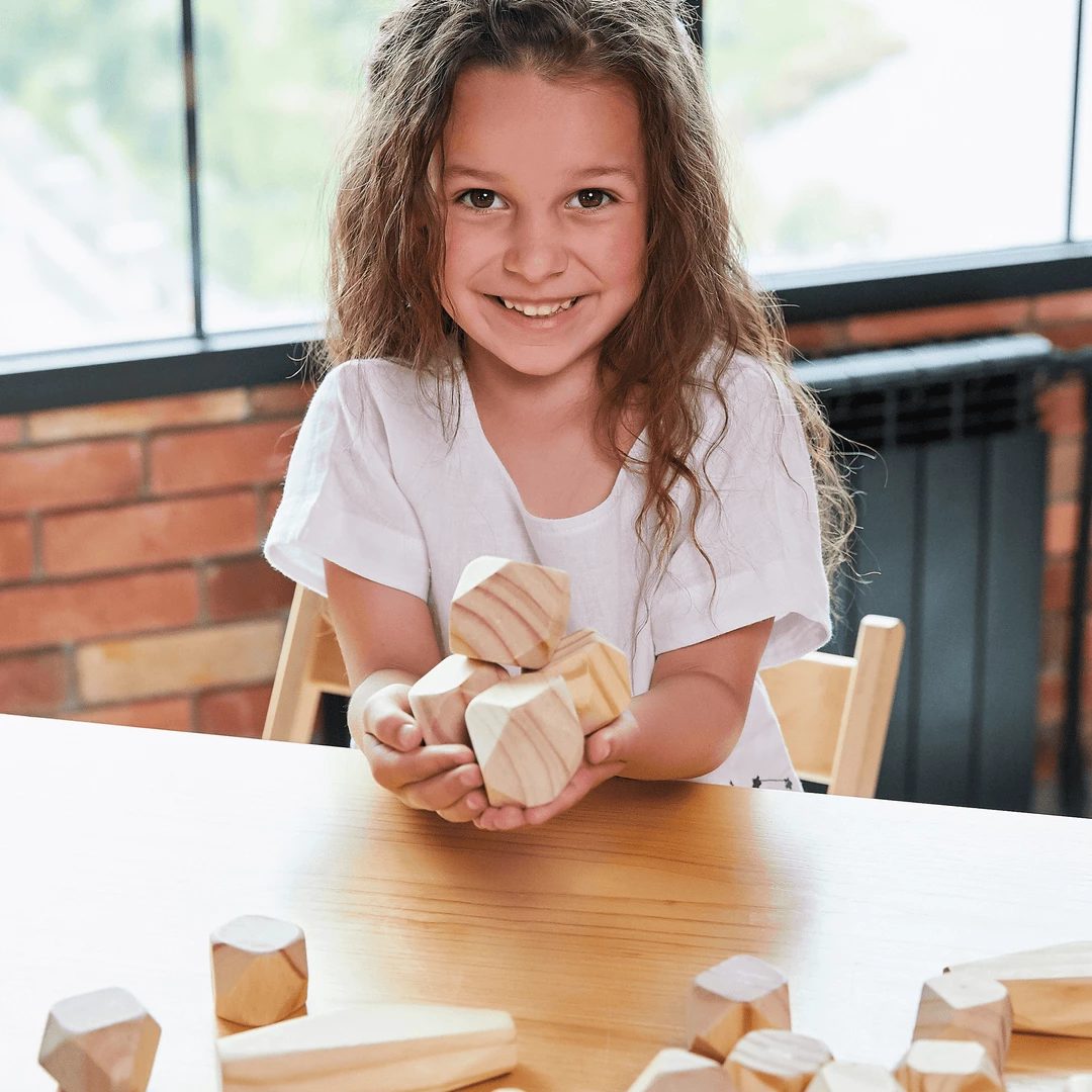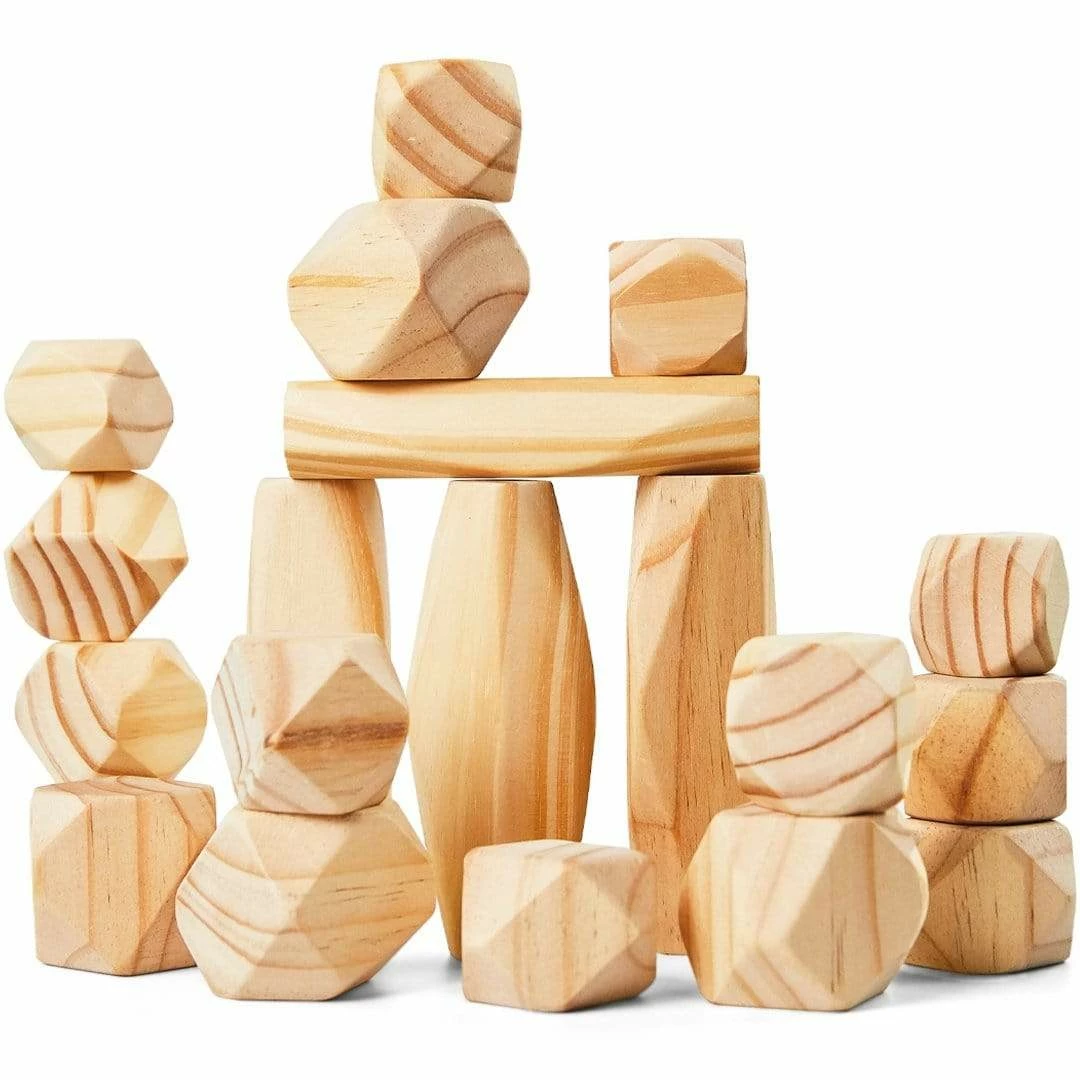 20 Large Size Natural Pine Wood Stacking Rocks, Montessori Educational Preschool Learning Sensory Toy, Wooden Balancing Blocks Set of Wooden Rock Blocks for Kids UNIQUE FUN GAME Our Wooden Balancing Stones are a wonderful and fantastic way to develop your children’s creativity and help them explore various shapes. Unlike the traditional wooden building blocks set, our set provides 20 unique blocks, in 5 different sizes, shapes, and weights, making the game more challenging and interesting WOODEN STACKING ROCKS SET Each stone is a solid polyhedron with various sides, weight, and sizes making them more challenging to stack. This toy helps kids increase curiosity, and introduces them to the first stage of problem-solving activities SKILL DEVELOPING TOY Stimulate your child’s sense of challenge and develop their hands-on skills while promoting creativity Product Description: Brand: Panda Brothers Material: Pinewood Box Size: 8.3”x8.3”x2.4” Includes: 20 x Large Wooden Balancing Rocks