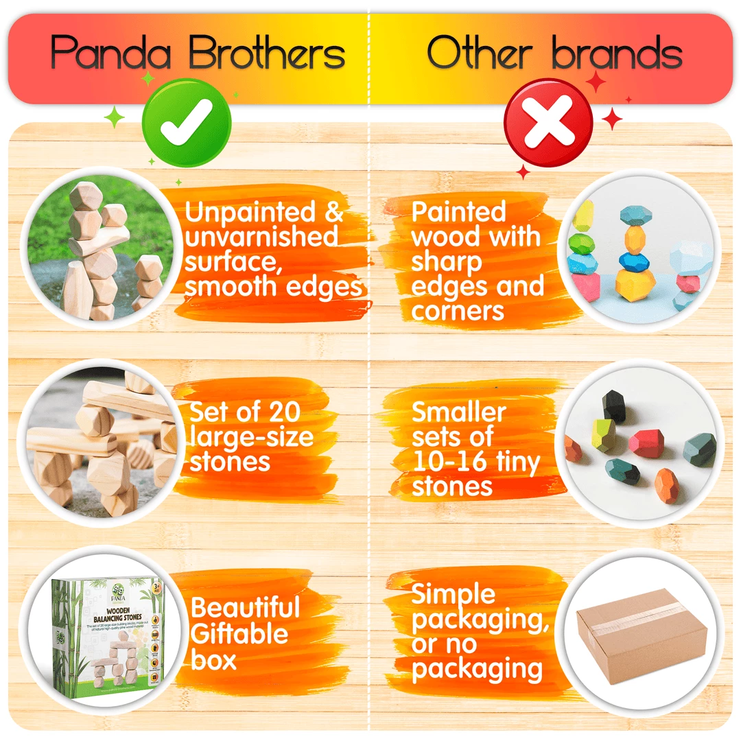 Panda Brothers Montessori Toy For Kids – Set Of 20 Wooden Balancing Stones Gifts