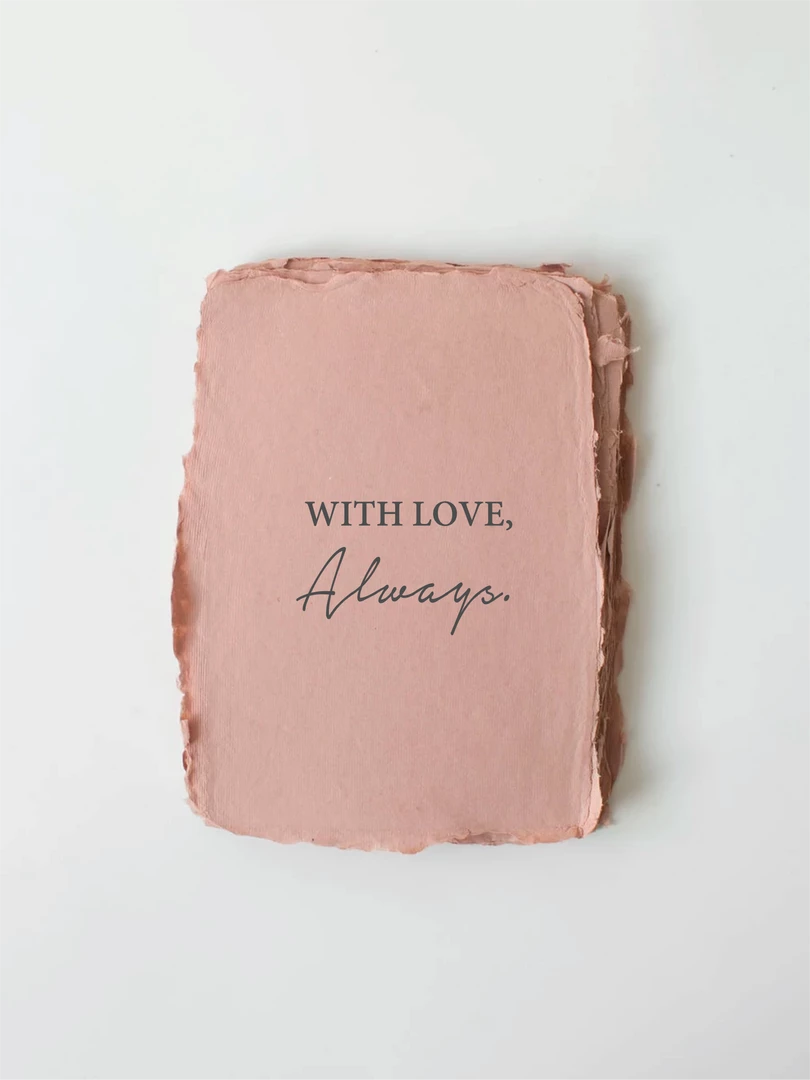 Our handmade deckled edge paper collection is letterpress printed in-house late at night with lots of coffee. This card is meant to be treasured for years to come. Handmade paper beautiful enough to frame and helps us ensure there was no slave labor in our supply chain.