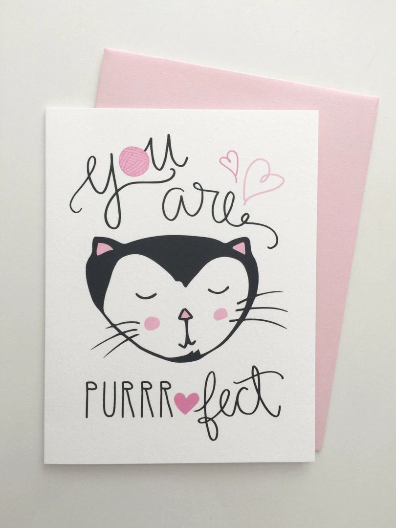 This is the cats meow!! Everyone likes to be appreciated and this card states how purrfect your recipient is!! The inside is blank for your own personalization Comes with a coordinating envelope.