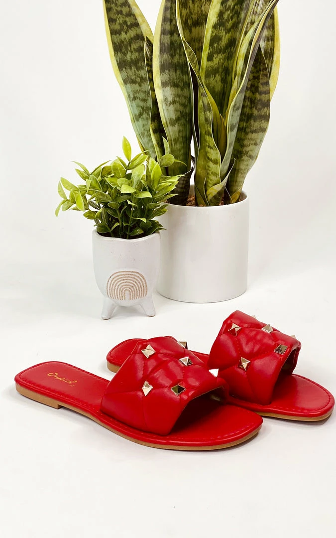 Keep those feet poppin’ with our fiery Castel slide in red!