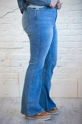 Sneak Peek MEDIUM WASHED HIGH RISE FLARE JEANS (GHG-3)