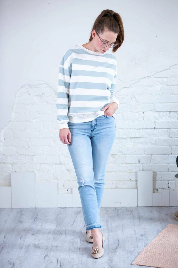 Aaaaah Sneakpeak. We have missed you. Sneakpeak’s signature quality, with the perfect cuff detail! Ankle length with a slight flair. Light wash. They go with everything without being basic. Who could ask for more?