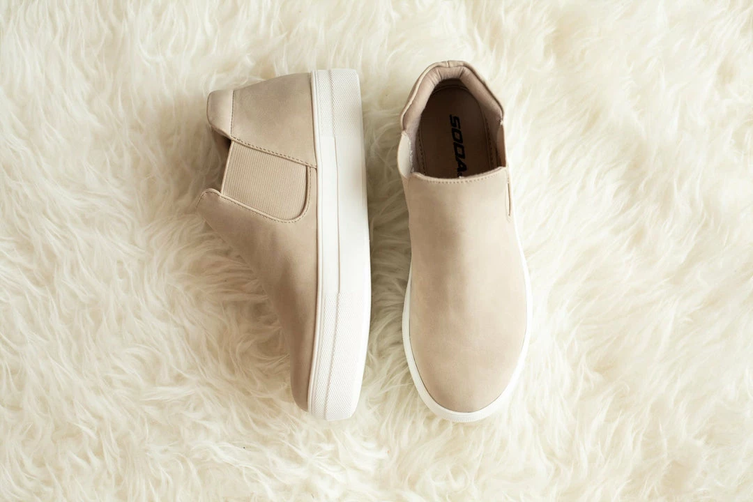 We absolutely love the “grown up” sneaker trend! Who doesn’t want to be able to wear sneakers to work!?! These are perfect for the office or running around town, out to Lunch with friends, or playing with your kids. A shoe for literally every occasion. Pair these with anything, from denim to trousers. I love them with skinny jeans. They feature a slip on style, with rubber sole and faux leather upper.
