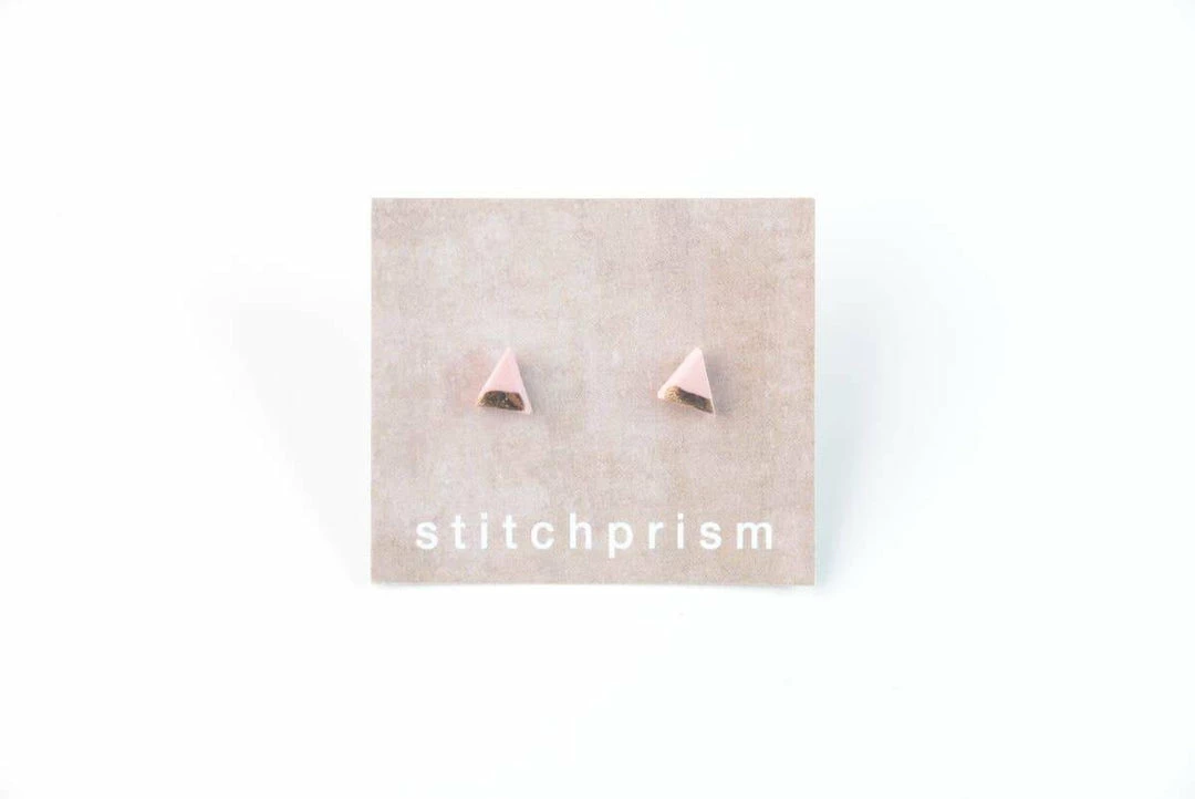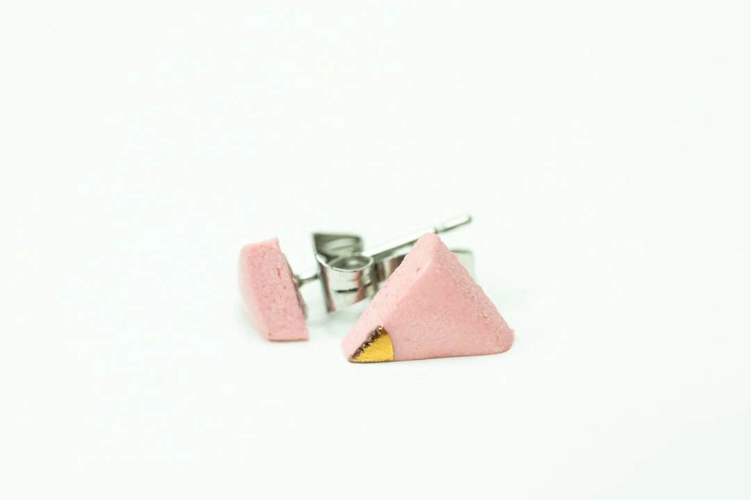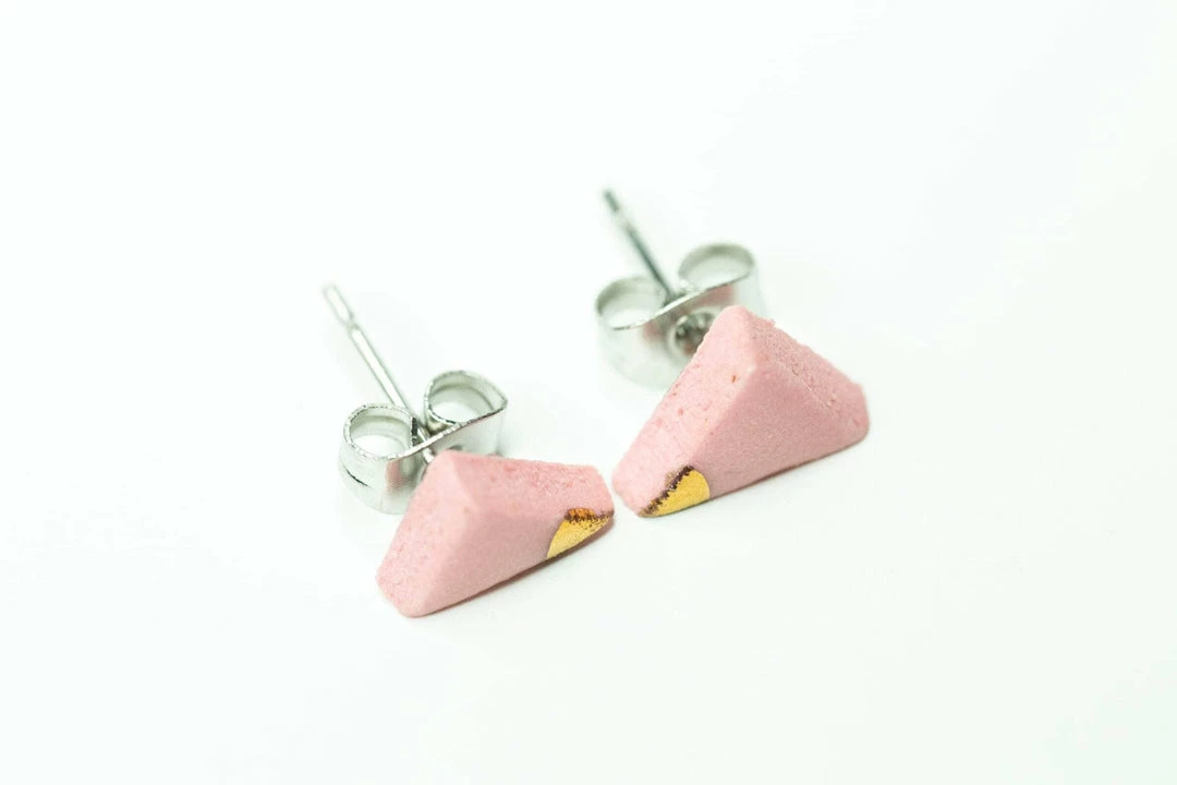 7-10mm triangle porcelain studs with gold luster on surgical steel backs.