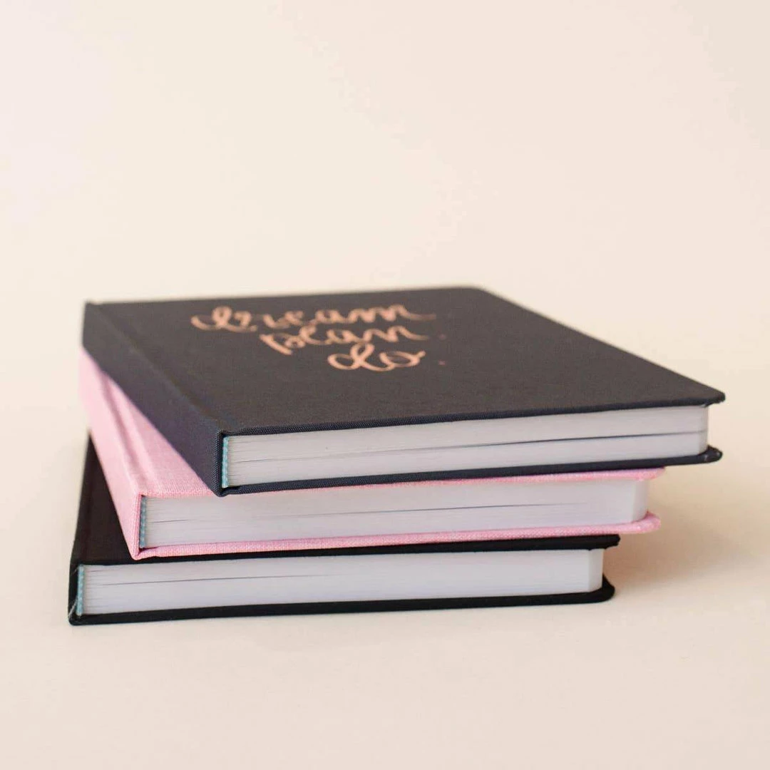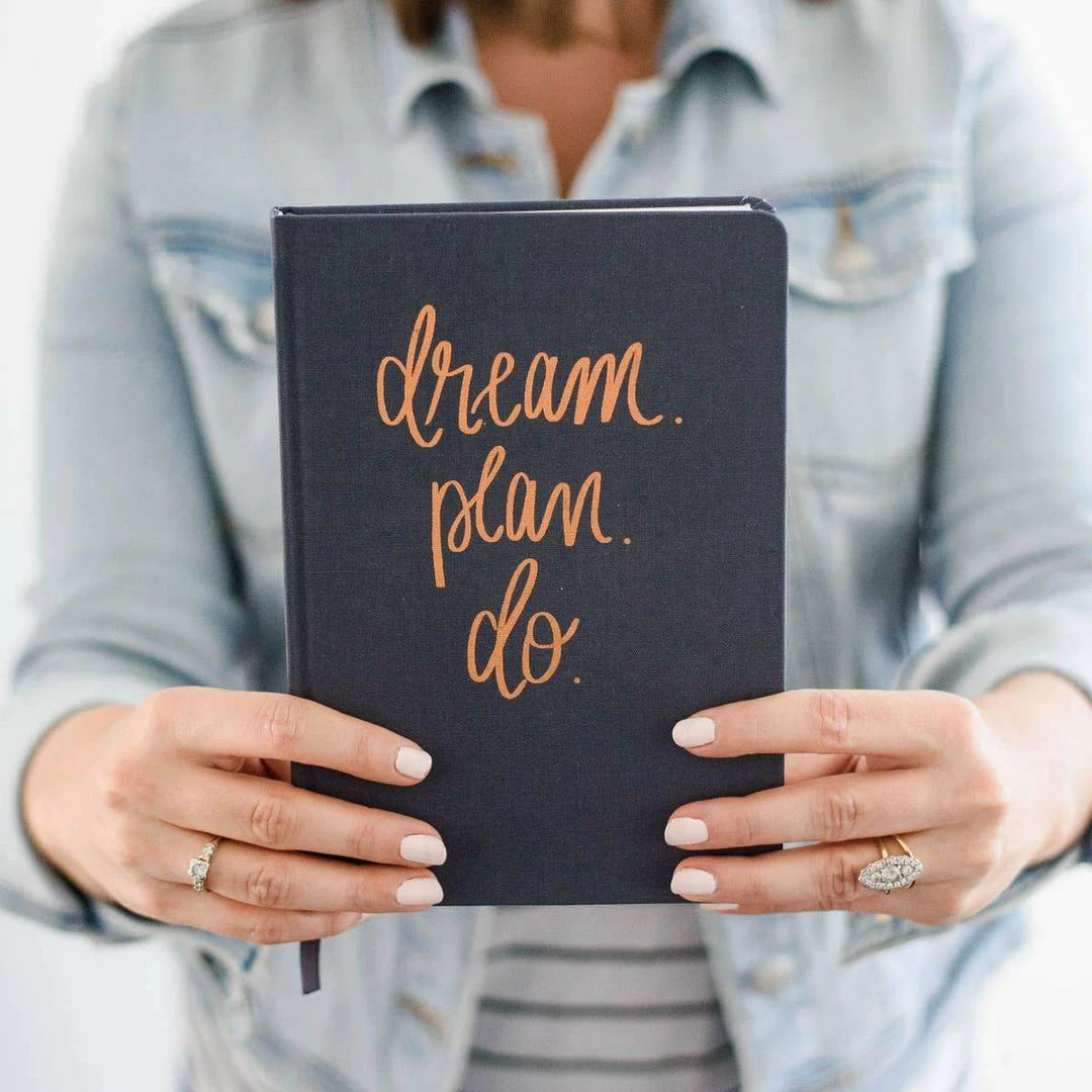 Write down all of your goals and dreams in our hand lettered Dream Plan Do Grey and Rose Gold Fabric Journal! With this chic, stylish, easy to write on notebook, there’s no better place to jot down motivational notes, inspirational quotes, lists, and all of your great ideas! Perfect for work or school. Details: + 8.1 x 5.6 x .6″ + Hand Lettered Design: Dream Plan Do + Grey Fabric Journal With Rose Gold Foil Details + 100gsm Uncoated Lined Paper + 100 pages front and back (200 total)