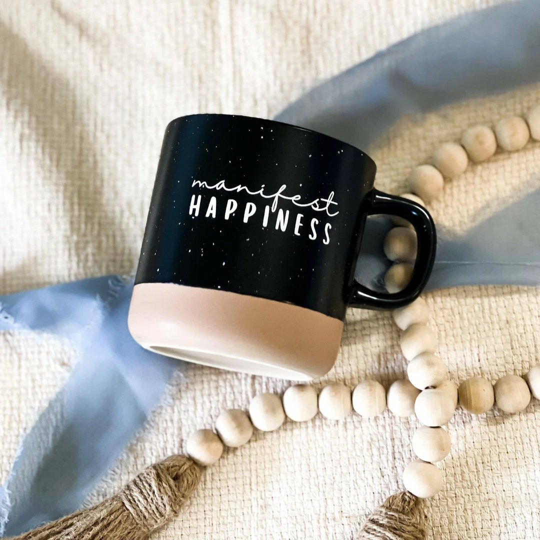 These mugs are trendy and classy featuring a speckled black top with a nude bottom. Each mug is ceramic and holds 12 oz liquid. These coffee cups have a boho vibe and are great for everyday use or kitchen decor! Our home decor is made in our shop in the Florida panhandle and has a mixture of primitive, farmhouse, and boho vibes. Photos may not appear true to size. Please note that colors may vary on different monitors or devices.