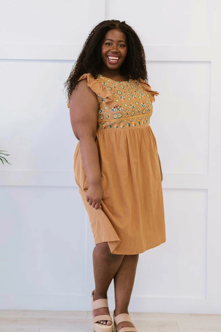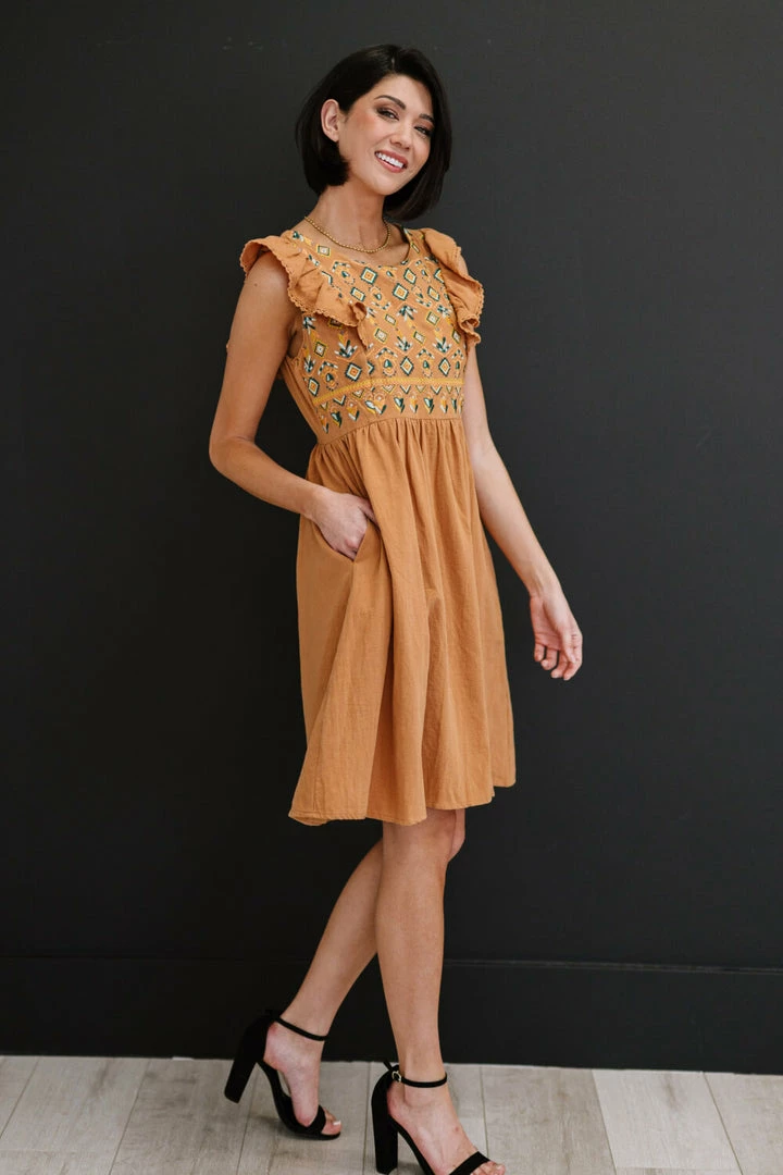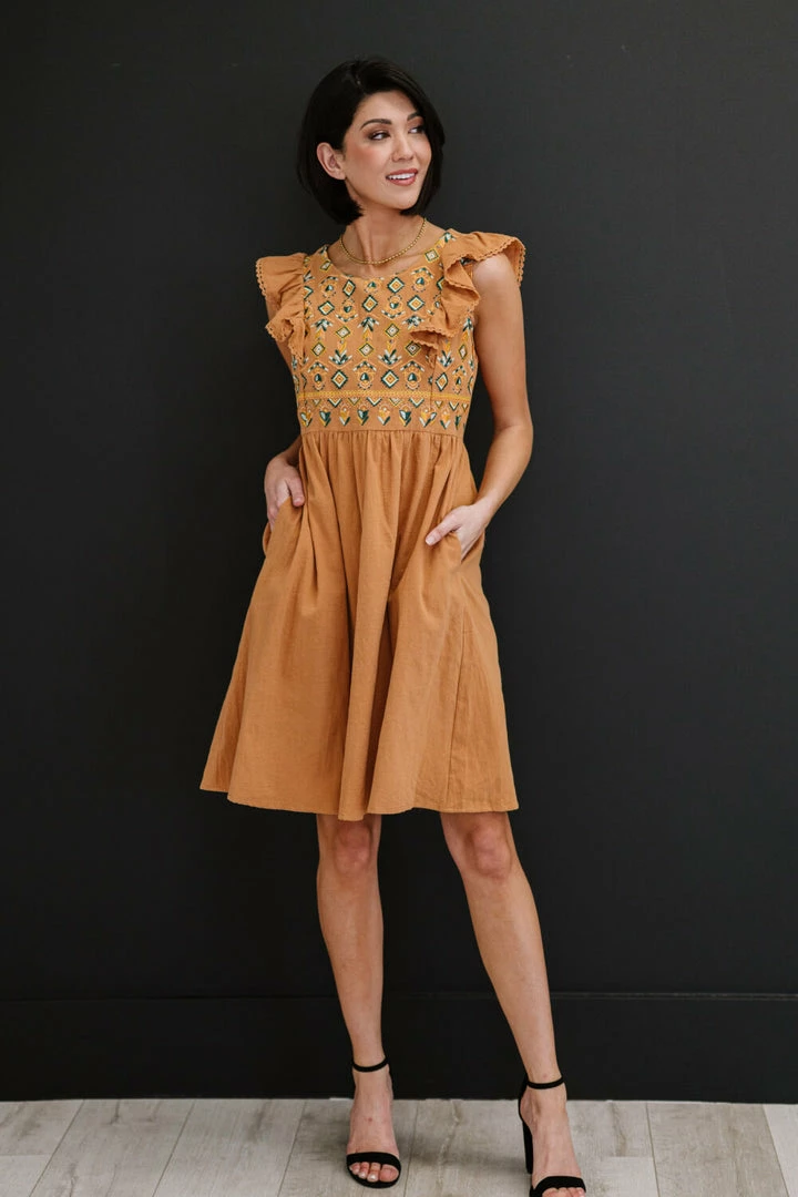 Who doesn’t love embroidery? This boho mini dress has lovely geometric embroidery on the bodice and is finished off with flutter sleeves. Stash your snacks in the pockets, and pair with some cute sandals!