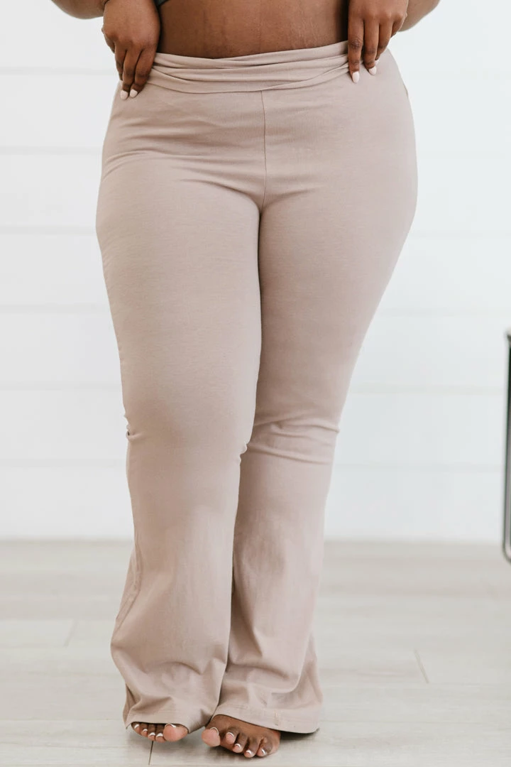 These fold-over flared yoga pants are life! They are high-waisted, comfy, stretchy, and can be paired with anything. You can wear them out and about, for yoga, or to lounge at home.