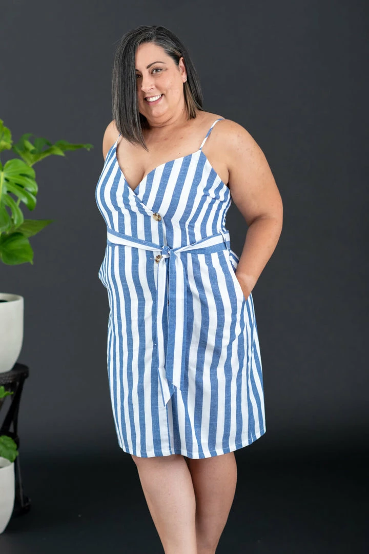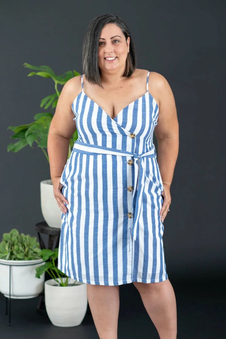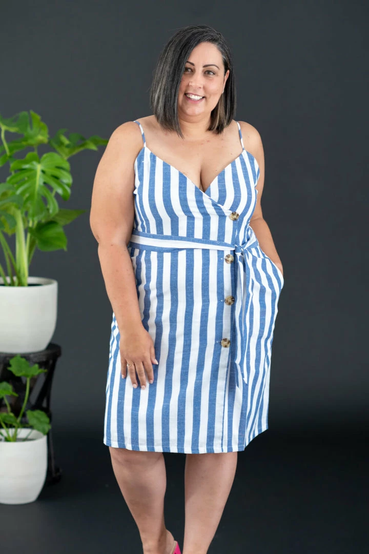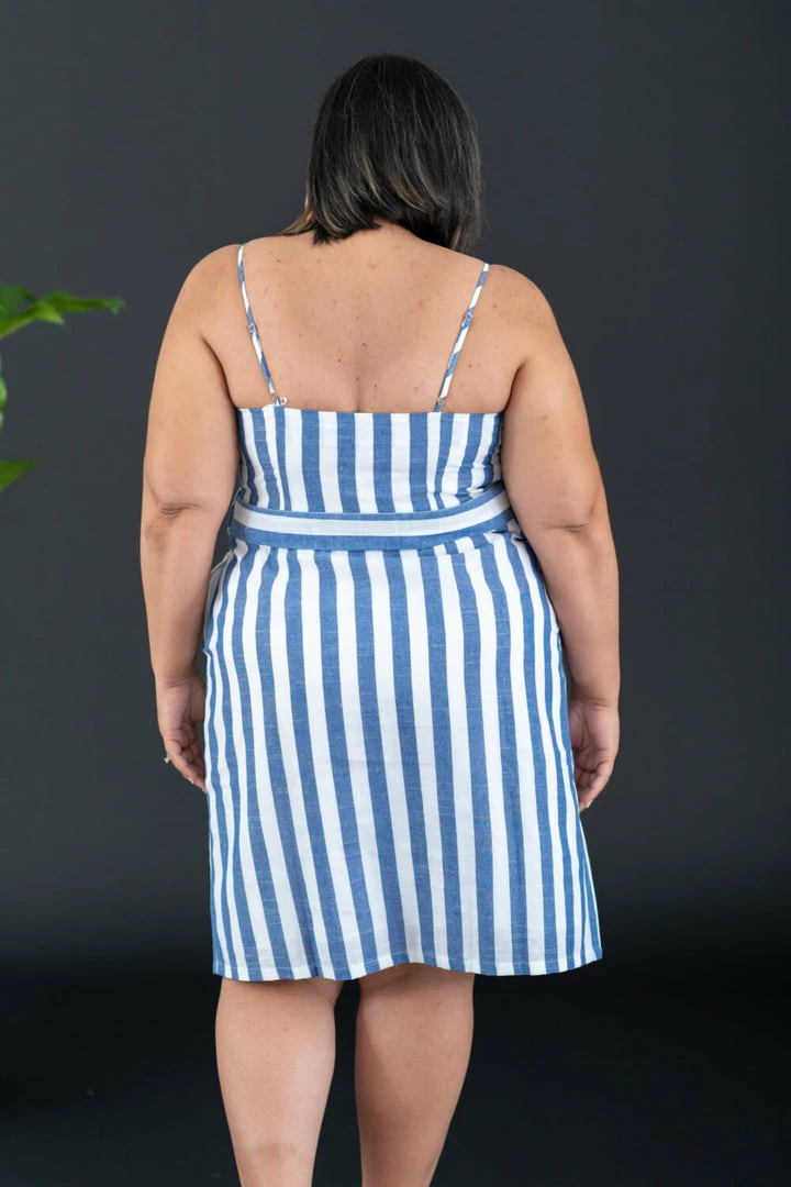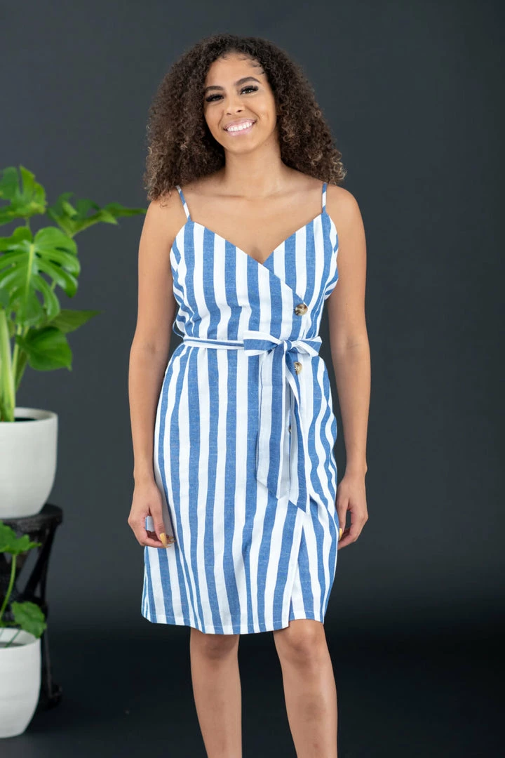 Classic and summery, this striped dress was made with a linen and cotton blend that will keep you cool on those hot and humid days. A sunhat, espadrilles, and a clutch will complete the look!