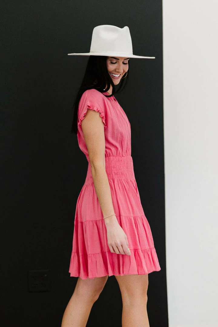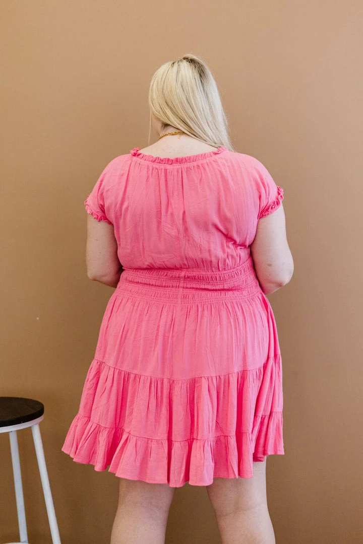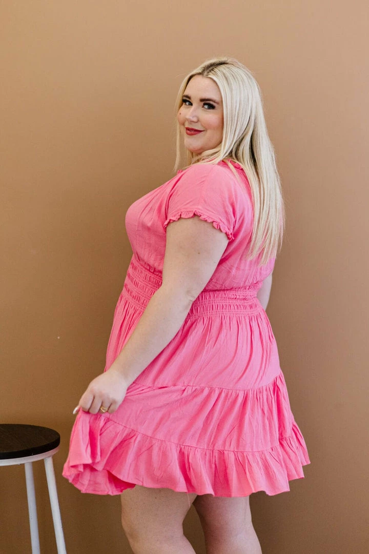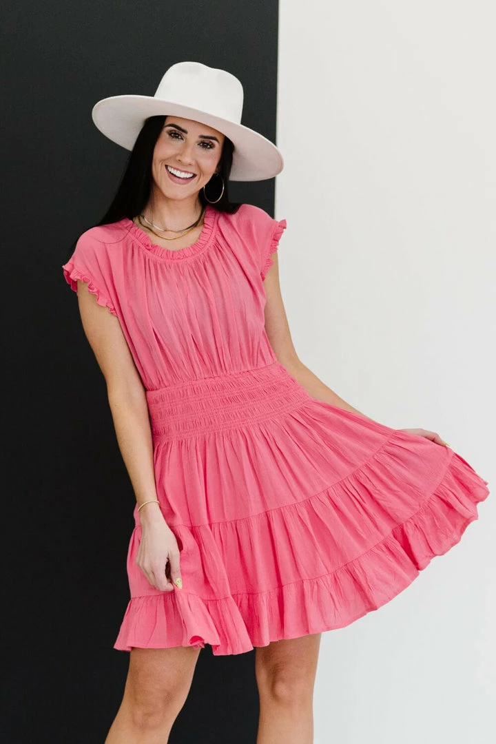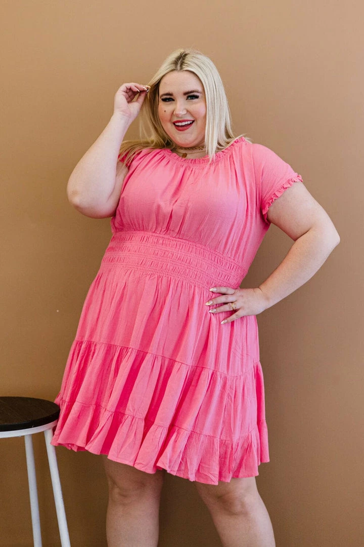 This lined dress is the perfect candidate for springtime family photos or to wear to a casual wedding. An elastic neckline and smocked waist ensure that this will feel good and look better on you! The very slight stretch and crinkle texture add an extra element, and the tiered design is right on trend! Layer a denim jacket over the top in case it gets chilly!