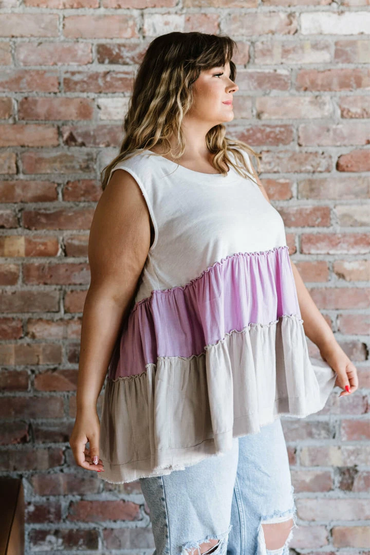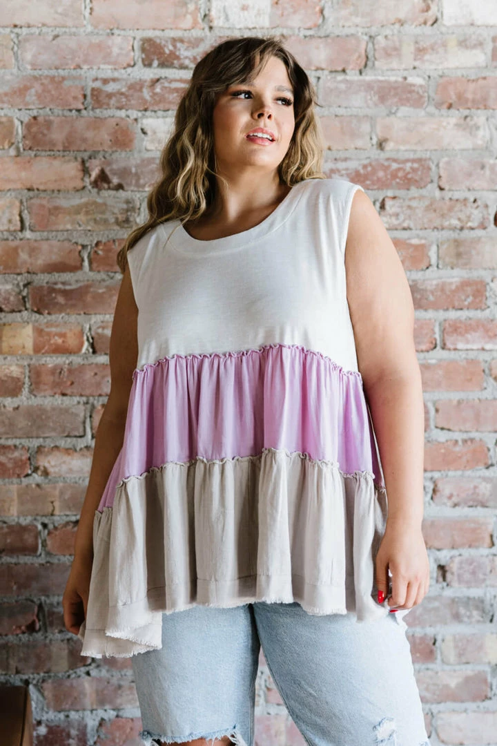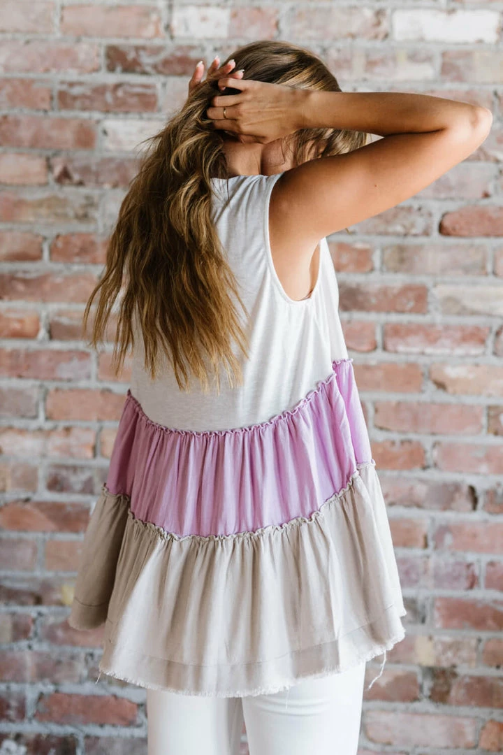 This tank adds a hint of femininity with the frilly tiers and babydoll design. The knit fabric at the top provides movement and comfort, while the woven tiers add some beautiful drape through their structured pleats.