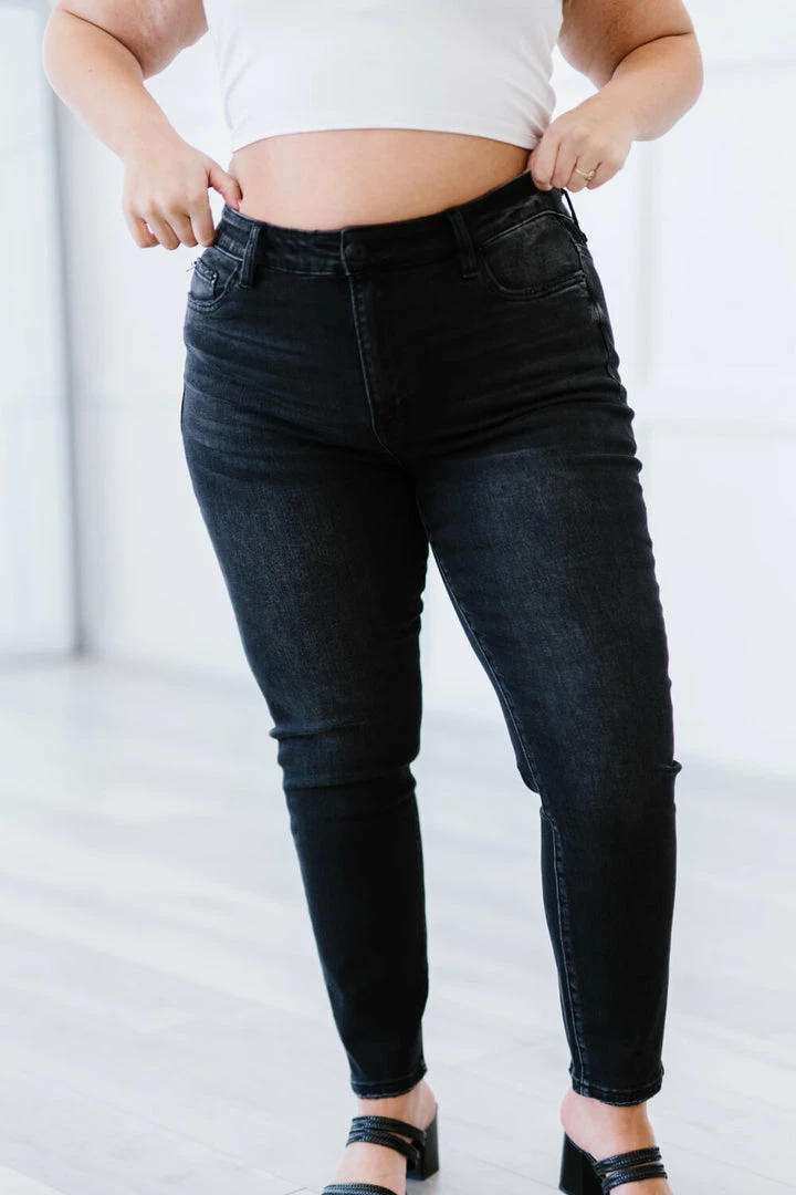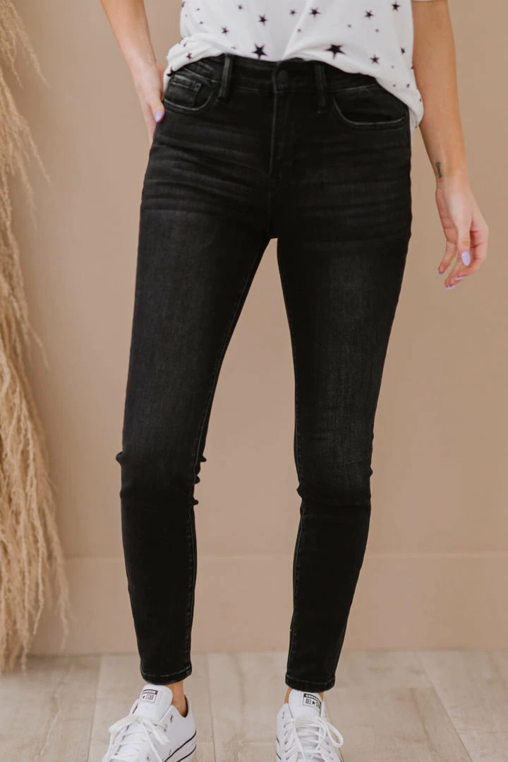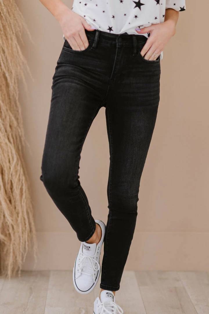 Basic, but never boring. These skinny jeans come in a washed coloring and a comfortable 9-inch rise. A sleek and chic look is easy to attain with some classic pumps and a blouse, or kick it back by adding a basic tee and sandals.